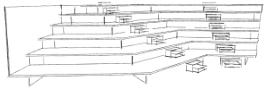 TheFloating AuditoriumwasinfluencedbytheformofMajestyPalm(RaveneaRivularis) whichcancreatelargestrongplanesofcoverwithoutblockinglightandair.Thestepsofthe auditoriummimicthebladeoftheMajestyPalm,offsetandoverlappingcreatingalarge solidsurfacefromaboveandaseriesofthinfinswhenseenfromtheground.