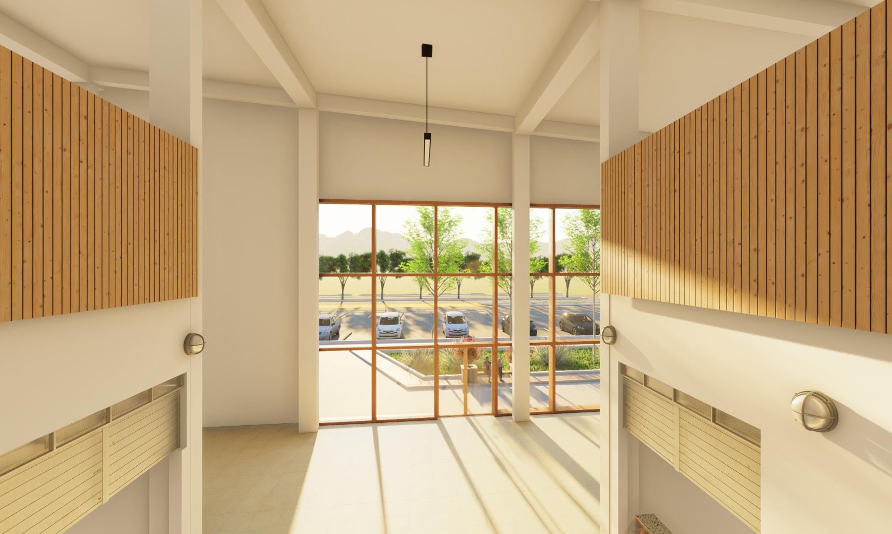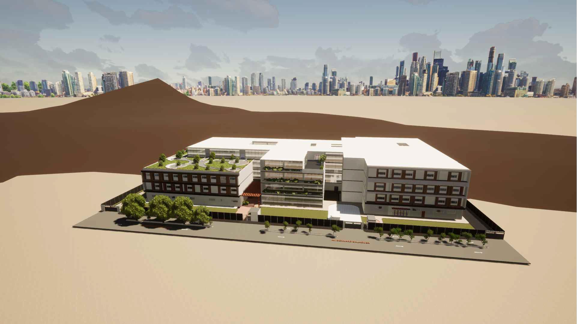 Los ambientes estan proporcionados según su tipo y actividad y asi generar espacios armoniosos para el usuario, los volumenes estan inclinados para dar sombra al recorrido dentro del edificio.