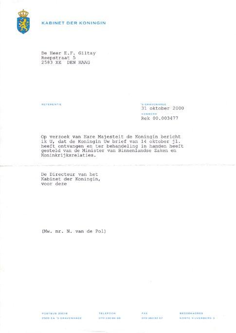 Nichts davon wird richtig untersucht, auch nicht nachdem auf meine Bitte hin Ihre Majestät Königin Beatrix eingeschaltet wird. Mein bvd-Kontakt erklärt mir, dass das nationale Interesse vor meinem den Vorrang hat.