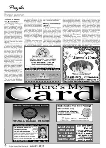States truly one nation, or was it a confederacy of sovereign and separate states? How could a country founded on the belief that “all men are created equal� tolerate slavery? In a national crisis, would civil liberties be secure? Lincoln used the Constitution to confront these three crises of war, ultimately reinventing the Constitution and the promise of American life. The library is sponsoring free programs and other events for the public in connection with the exhibition. Contact Erik Estep, social sciences librarian (618650-3206 or eestep@siue.edu) or visit siue.edu/lovejoylibrary for more information. “Lincoln: The Constitution and the Civil War� will be on display at the library until August 3, 2012.