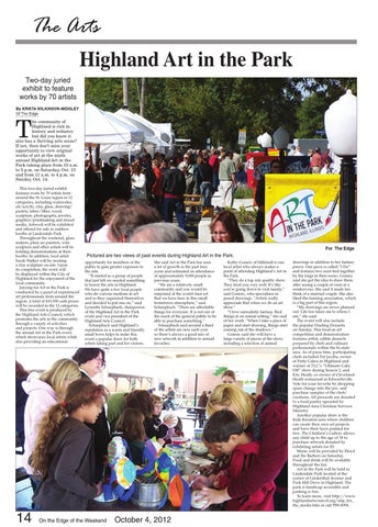 The Arts Highland Art in the Park Two-day juried exhibit to feature works by 70 artists By KRISTA WILKINSON-MIDGLEY Of The Edge
