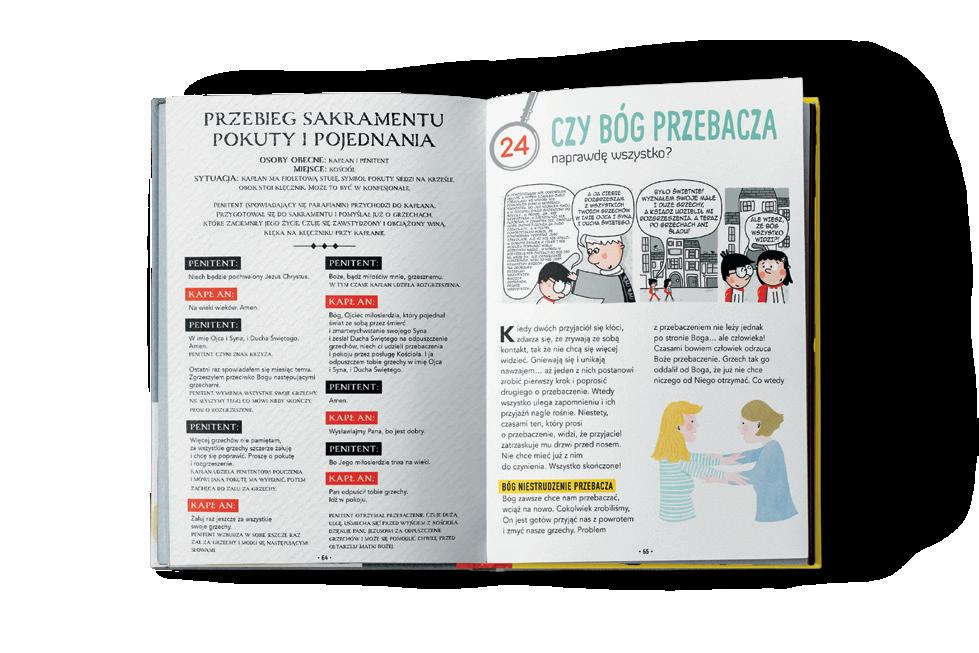 Wszystko w atrakcyjnym, bogato ilustrowanym wydaniu, wykorzystującym elementy tak lubianego przez dzieci i młodzież komiksu. Książka to świetna propozycja dla każdego dziecka, które interesuje się detektywistycznymi zagadkami i lubi obrazkowe historyjki. Doskonale sprawdzi się również jako pomoc dla rodziców, katechetów, duszpasterzy i wychowawców szukających odpowiedzi na zadawane przez dzieci pytania o wiarę.