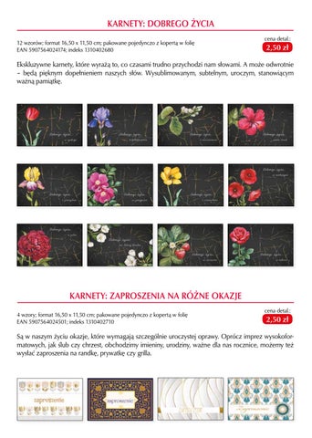 KARNETY: DOBREGO ŻYCIA 12 wzorów; format 16,50 x 11,50 cm; pakowane pojedynczo z kopertą w folię EAN 5907564024174; indeks 1310402680
