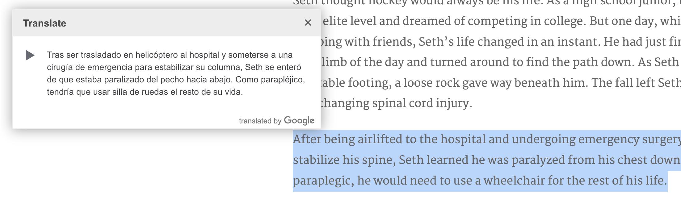 The translation default is Spanish, but there are 96 languages available. The students can change the language in Settings. Many languages include a read-along feature, so students can hear words and sentences read in their preferred language.