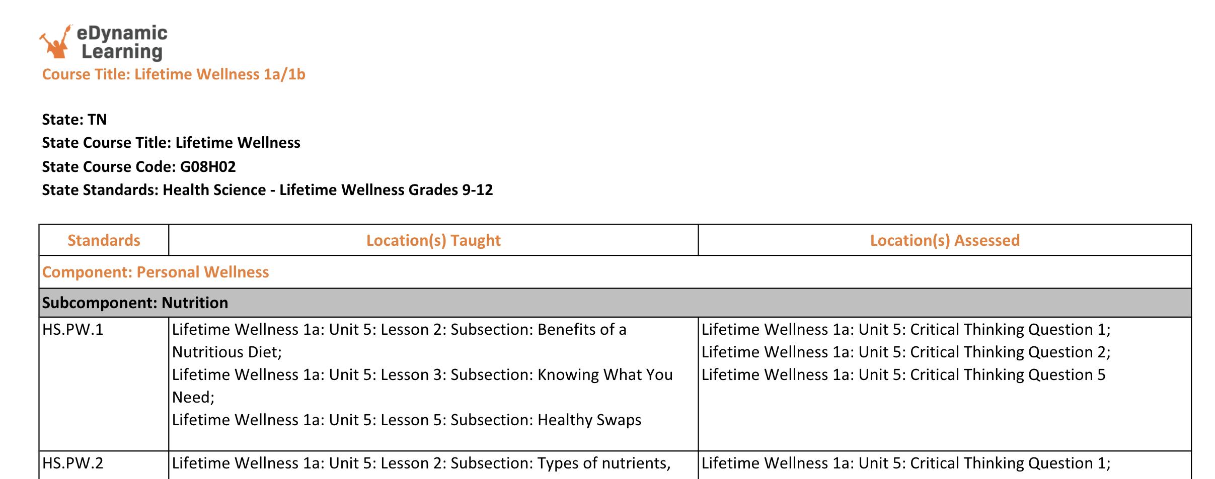 Thank you for participating in the review of eDynamic Learning courseware for the Tennessee Textbook Commission Schedule E adoption for PE and Health.