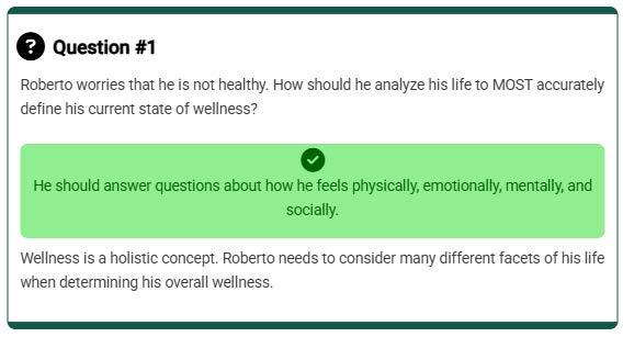 The Knowledge Check is a low-stakes practice exam found at the end of the last lesson in every unit. These practice exams provide correct and incorrect answer feedback so that students can extend their learning. There are no grades associated with the Knowledge Check, giving students the opportunity to retry until they get the correct answer. If the student gets the answer wrong they will get automatic coaching feedback.