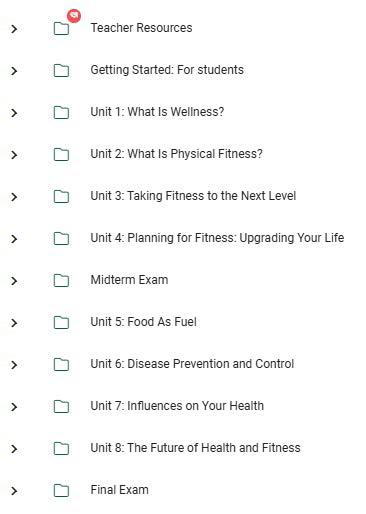 All courses follow the same format. You will see Teacher Resources, Getting Started for Students, the Units of study, a Midterm, and a Final exam.