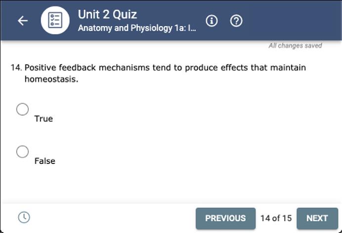 ‘Test Your Knowledge’ quizzes are presented to students throughout the course and are not counted as part of their grade. This provides an opportunity to practice and ensure they are prepared prior to taking high-stakes, graded unit quizzes.