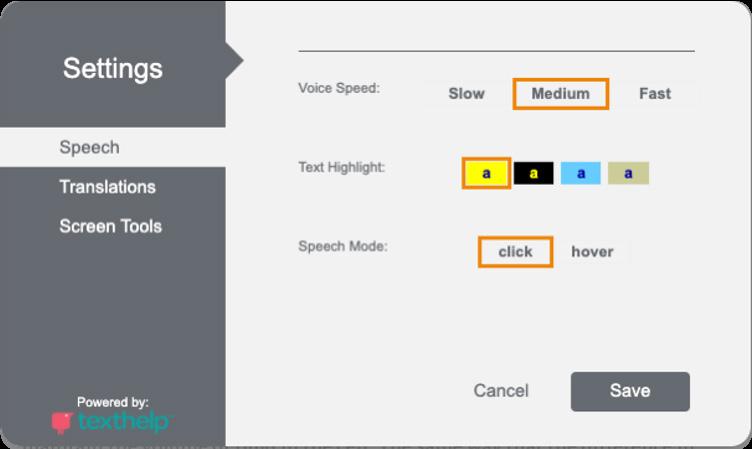 Text can be read aloud in 3 speeds and highlighted in 4 different colors. Words are highlighted when spoken, which engages and motivates auditory learners, improves vocabulary, comprehension, information processing skills, and increases their attention span.