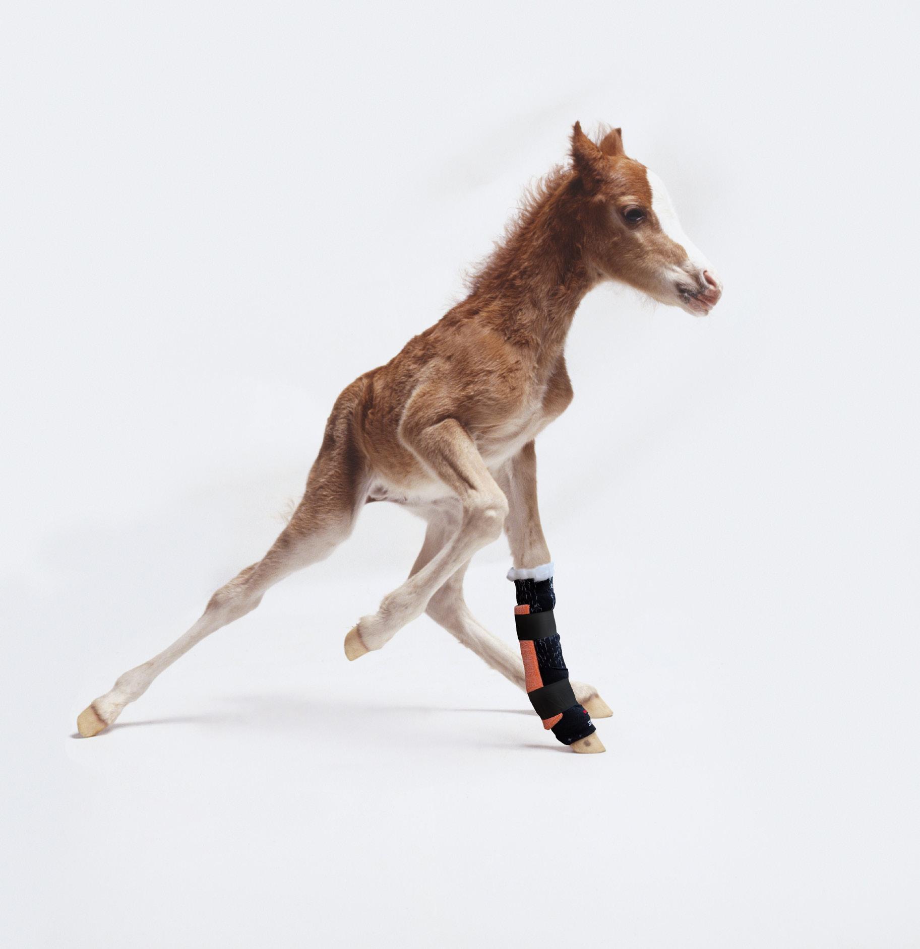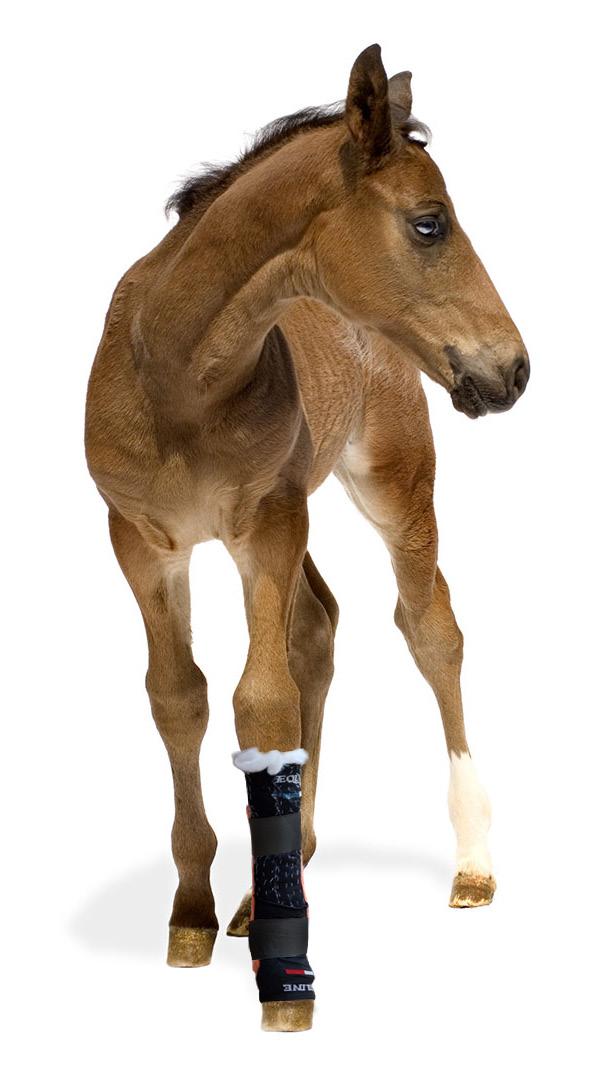 Strijk de lap Orficast glad over het been van het veulen. 06