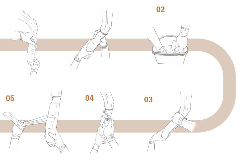 Neem een stuk Orficast spalkmateriaal en drenk het voor een minuut in water van minstens 65°C. 05