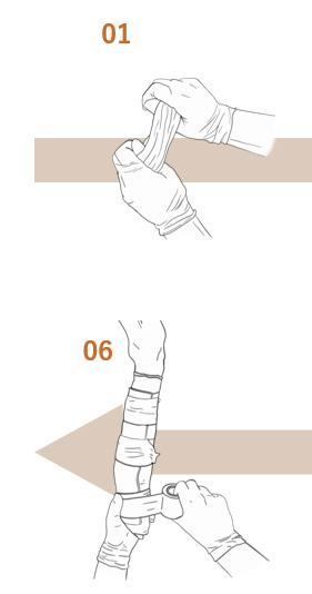 Wikkel het gaasverband af eens de spalk uitgehard is.