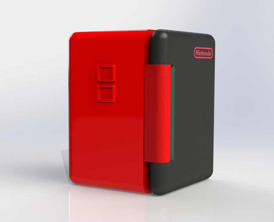 In het 3de jaar productontwikkeling heb ik tijdens de X-plore Design Week (XDW) deze mini koelkast ontwikkeld binnen de productfamilie van Nintendo. De opdracht was een bestaand bedrijf te kiezen en vervolgens een product hiervoor te ontwerpen dat niet veel te maken had met de bestaande producten van de gekozen organisatie. Het resultaat was in mijn geval een mini koelkastje waar gamers wat drankjes en versnaperingen in kunnen opbergen.