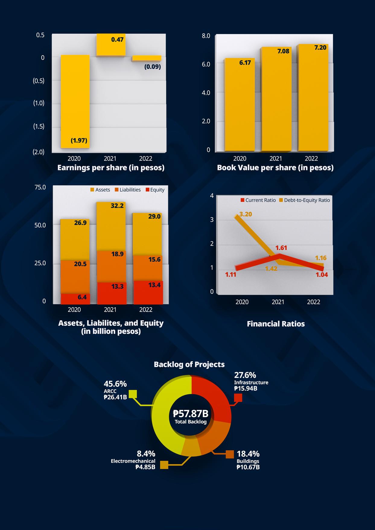 EEI Corporation successfully completed 25 projects. Our operations were affected by various delays in executing backlog works which adversely affected revenues. This challenge was further compounded by other factors including a sluggish economy, higher inflation and fuel costs, increasing borrowings, as well as global supply chain issues.