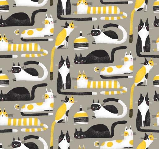 We’ve heard it said that one cat just leads to another, and any one of these prints will make you want them all. A retro color palette of red and yellow mixed with black, white and gray gives us mid-century mod vibes. The cats are cool and hip - strutting their stuff, lounging about - and how chic is the outline print? These fabrics are the cat’s meow daddio!