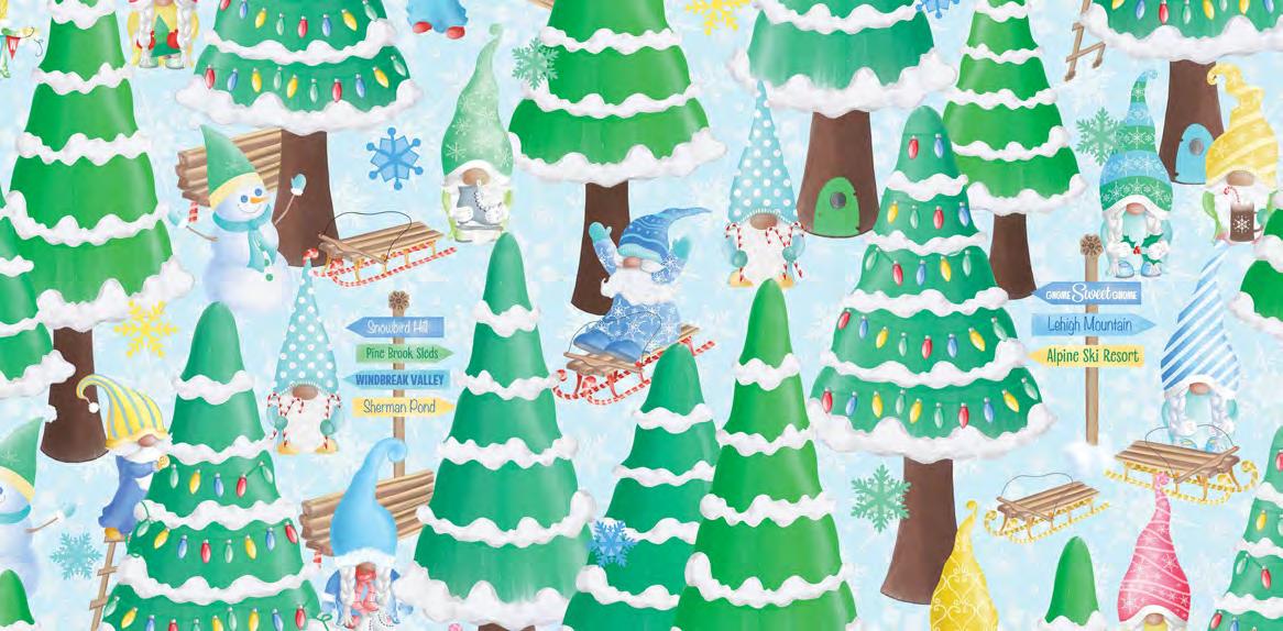 bolt1 bolt 2 bolts3 bolts 12819-54 Winter Time Gnomes - Sky Blue 5/8 yd 7 1/2 yds 15 yds 22 1/2 yds