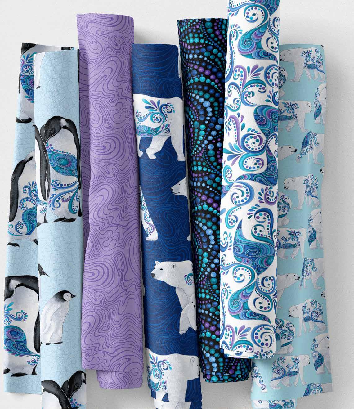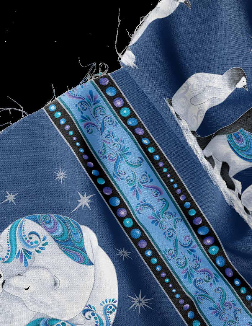 Once again Ann Lauer has brought her unique style to the animal world, this time visiting the opposite poles for her new Polar Attitude collection. The polar bears and penguins are exquisitely realistic shapes decorated with “attitude” - and just a hint of pearlescence. The fun allover prints highlight these frosty friends in motion, and complement the Polar Bear panel beautifully!