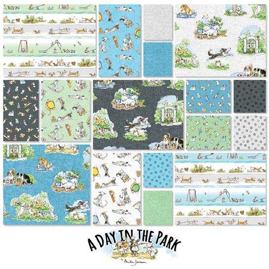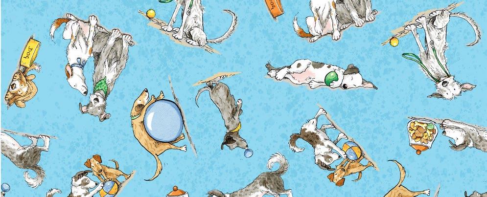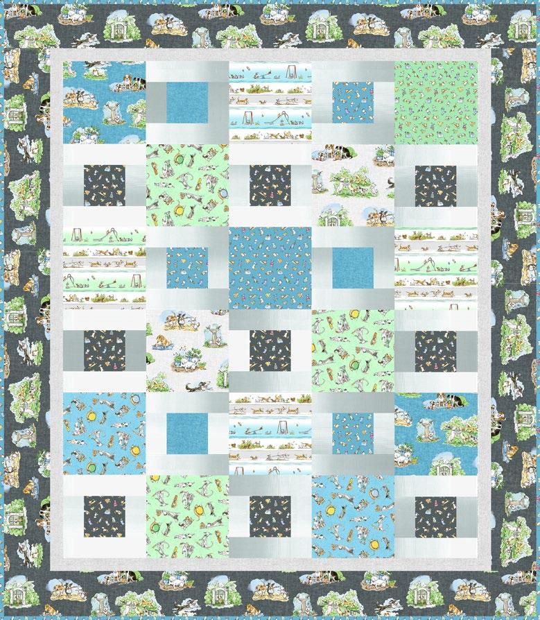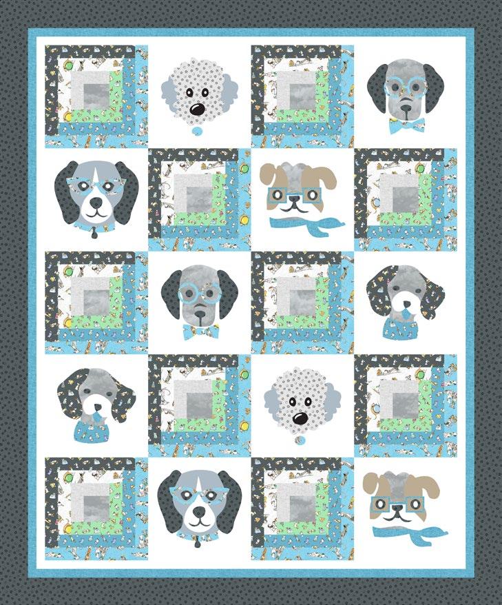 Fabrics: 1 Kit 10 Kits 20 Kits Fabric 1: Dk Gray Small Dogs Y3878-7 ½ yd 1 bolt 1 bolt Fabric 2: Lt Pool Large Dogs Y3877-123 ⅝ yd 1 bolt 1 bolt Fabric 3: Pool Small Dogs Y3878-124 ½ yd 1 bolt 1 bolt Fabric 4: Mist Gray Large Dogs Y3877-116 ½ yd 1 bolt 1 bolt