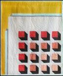 To construct as shown, divide squares into cool and warm categories. We used these predominantly green/blue/black fabrics in the “darks” category: Y3881-3, Y3882-55, Y3883-21, Y3884-3, Y3885-21, Y3886-3, Y3889-3, Y3889-33, Y3889-101 and these red/magenta tones in the “lights” category: Y3881-1, Y3882-56, Y3883-55, Y3884-1, Y3885-55, Y3886-1, Y3887-55, Y3887-56, Y3888-55.
