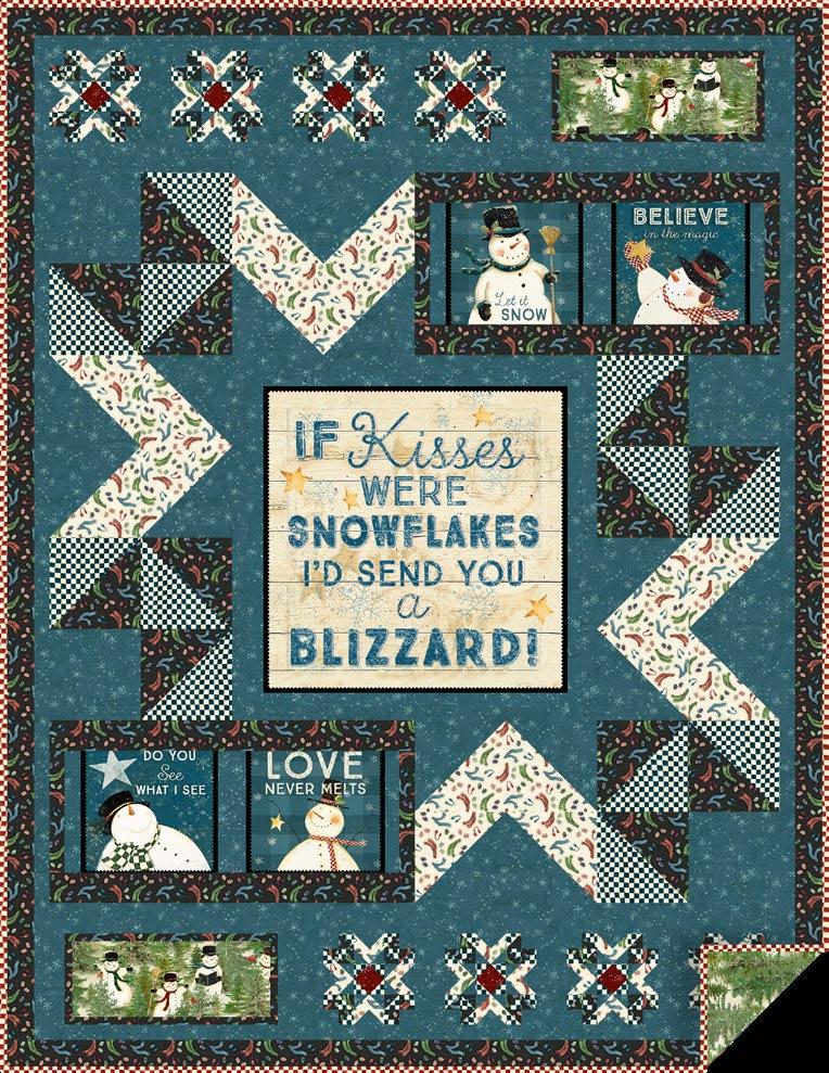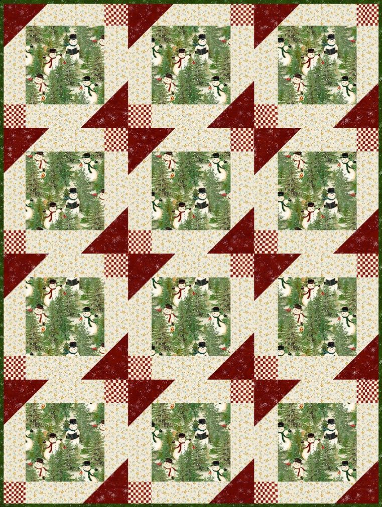 Fabrics: 1 Kit 10 Kits 20 Kits Background: Black Dappled Y2949-3 3 ¾ yds 3 bolts 5 bolts Snovalley Fat Qtr Pack FQ0424* 1 pack 10 packs 20 packs Binding: Dk Olive Digital Check Y3873-25 ⅝ yd 1 bolt 1 bolt Backing: Dk Forest Digital Tossed Snowmen Y3870-113 5 yds 4 bolts 7 bolts Add'l requirements: