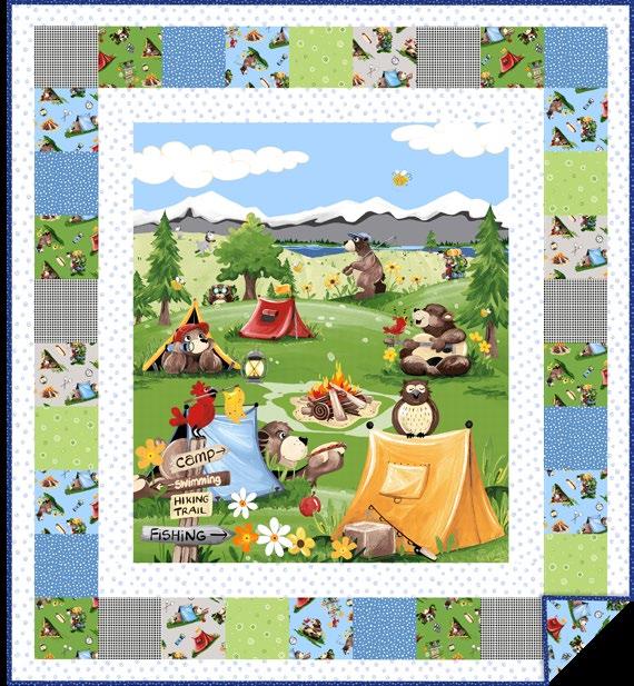 Fabric 8 (Binding): Forest Tonal Y4855-113Brown Tonal Y4855-15 ½ yd 1 bolt1 bolt Backing: Lt Khaki Mushrooms Y4853-11White Animals Y4851-1 3 ¼ yds3 bolts5 bolts