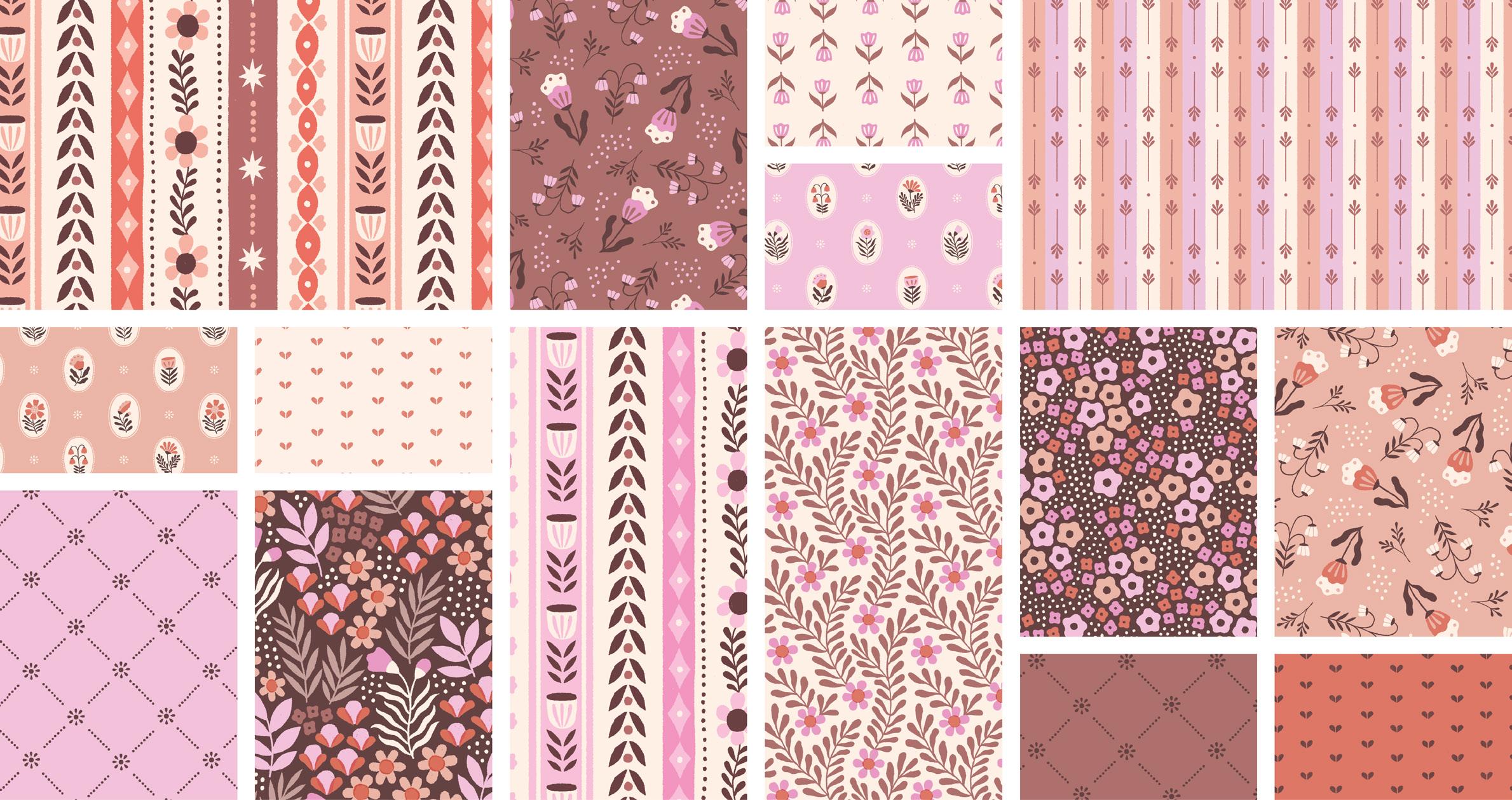 is a bold and timeless pattern collection inspired by artistry of traditional tattooing. Designed by RouCouCou for Valentine’s Day, this collection features classic ink motifs with a romantic twist - hearts, flowers, love letters, ladybugs and even love-struck sheep. Let’s spread love with a rebellious charm this year!