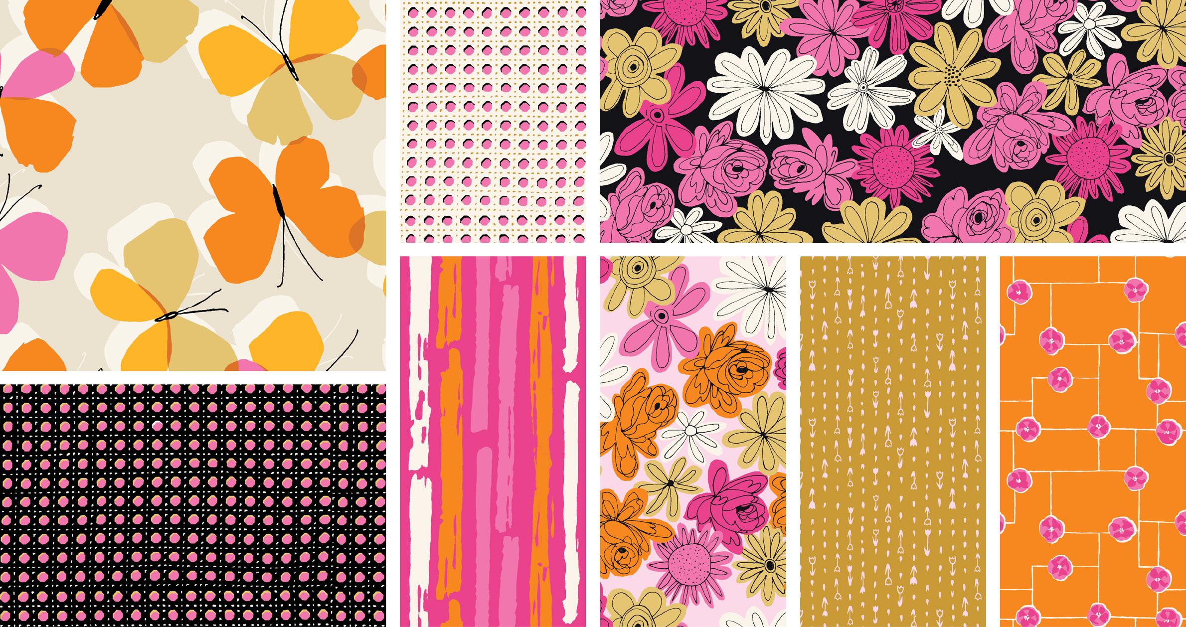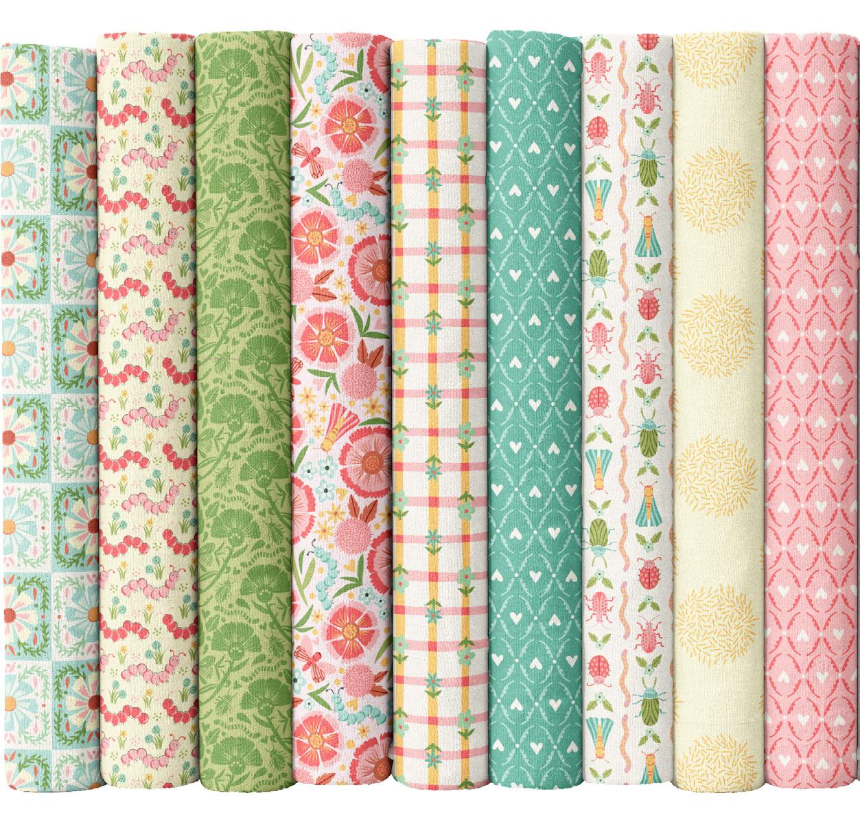 LOVE BUGS is inspired by nature and the little wonders found in gardens and meadows. With its bright, cheerful charm—just like a sunny day outside—it features cute playful bugs, colorful garden flowers, sweet meadow blooms, and nostalgic plaids. Every design is made to bring joy and celebrate the love in