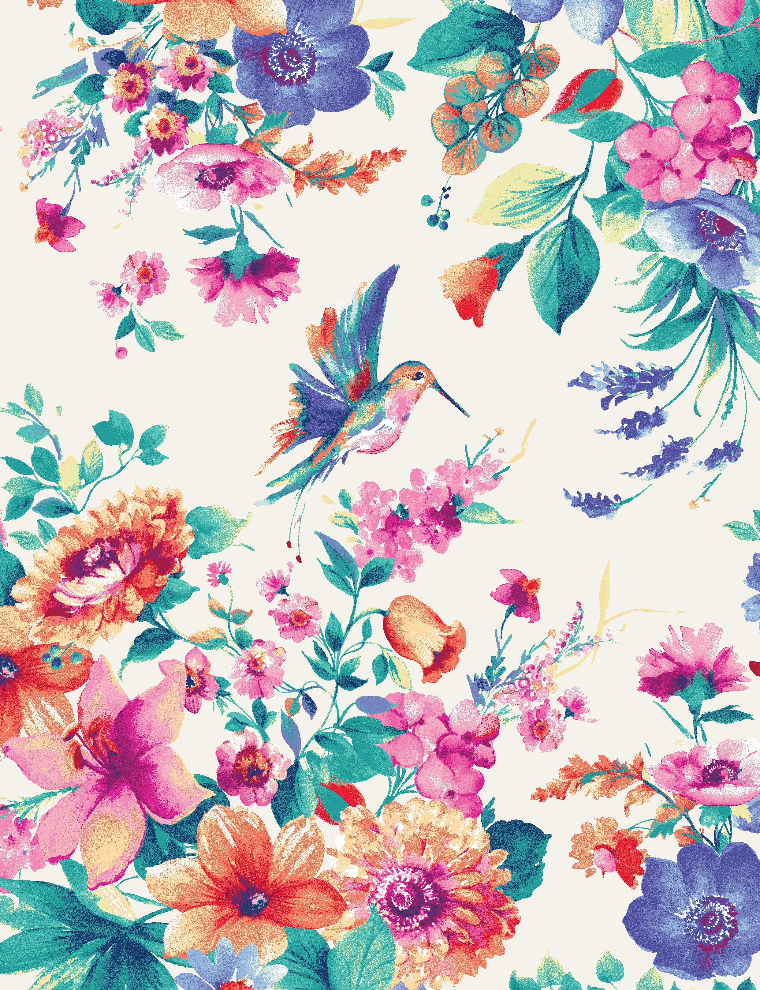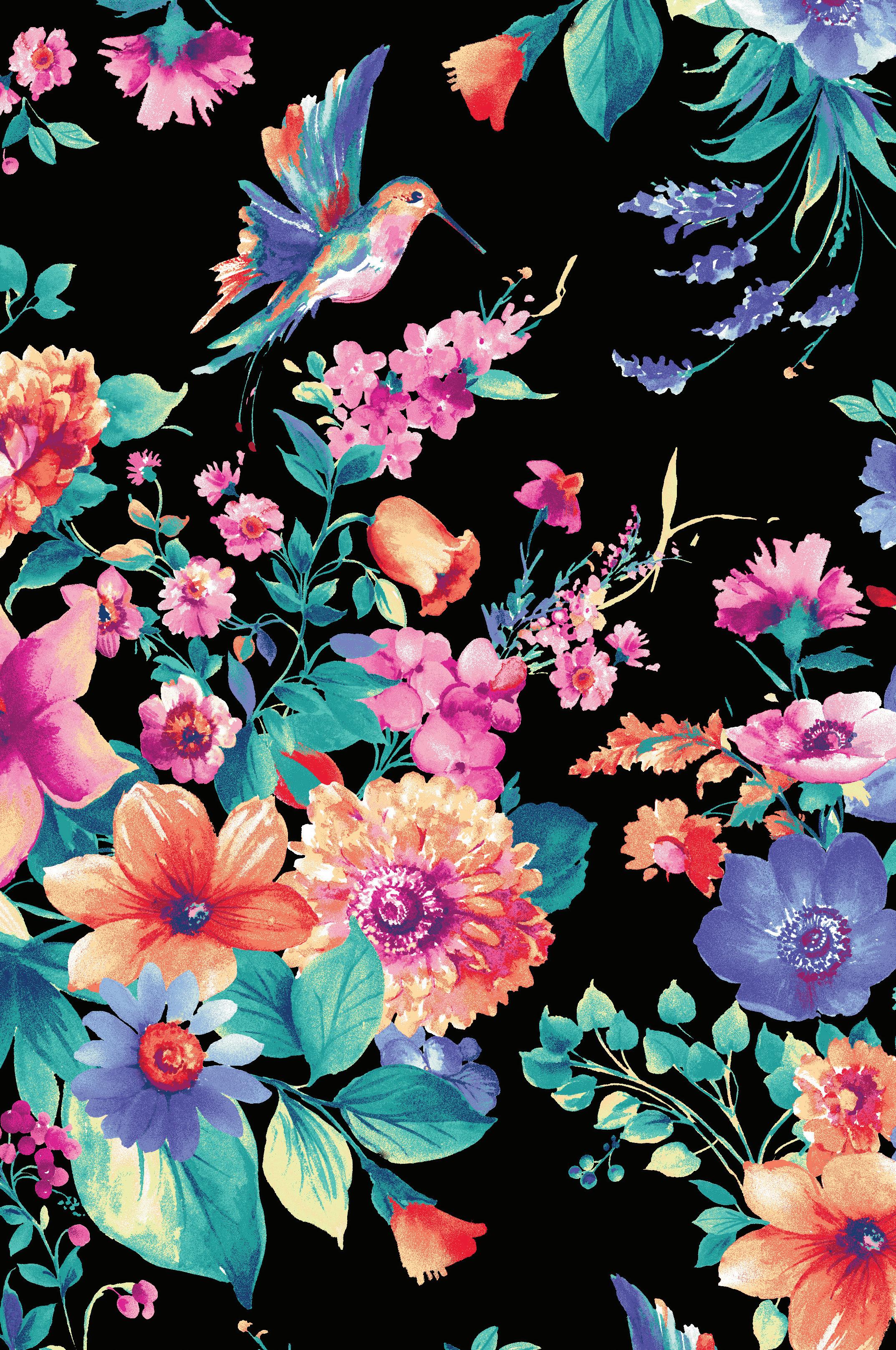 Step into a fantastical garden with Summer Buzz from Maywood Studio. Hummingbirds dart among packed florals - dahlias, daisies, lilies, and lavender - bursting with color against a bold black background. A vibrant panel makes a striking quilt centerpiece or can be cut into smaller blocks for bags, pillows, and quick projects. With energetic prints and lush, imaginative blooms, this collection invites you to dive into bold color play and expressive projects.