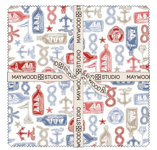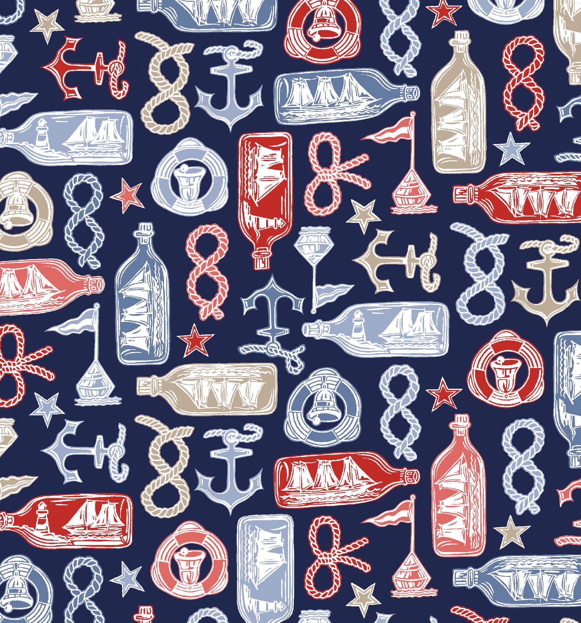 Set sail with Regatta Days by Maywood Studio, a lighthearted nautical collection full of hand-drawn boats, vintage anchors, and playful ships in bottles. A classic palette of red, white, and blue, softened with tan and cream, makes these prints perfect for table toppers, breezy runners, or mixing and matching quilt blocks. With geometric and maritime motifs on linen-textured backgrounds, plus two cotton canvas prints, Regatta Days lets you chart a creative course with every stitch.