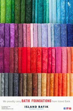 ISLANDBATIK.COM • 760.602.0607 • INFO@ISLANDBATIK.COM • #ISLANDBATIK 3 • Reach more customers on Facebook and Instagram • Inspire your customers with a variety of projects using Island Batik seasonal collections • Support your shop with ongoing ideas that cater to your customers • Grow your social media presence The Island Batik Ambassadors What can the Island Batik Ambassadors do for your shop? 1. Brenda Alburl www.songbirddesigns.blog 2. Megan Best www.bestquilter.com 3. Pamela Boatright www.pamelaquilts.com 4. Elizabeth DeCroos www.epidastudio.com 5. Jennifer Fulton www.inquiringquilter.com 6. Preeti Harris www.sewpreetiquilts.blogspot.com 7. Mania Hatziioannidi www.maniaforquilts.com 8. Jane Hauprich www.stitchbystitchcustomquilting.com 9. Reed Johnson www.bluebearquilts.com 19. Brianna Roberts www.quirkyb.com 20. Michelle Roberts www.creativeblondegifts.com 21. Gail Sheppard www.quiltinggail.wordpress.com 22. Andi Stanfield www.truebluequilts.com 23. Sandra Starley www.utahquiltappraiser.blogspot.com 24. Jennifer Thomas www.curlicuecreations.com 25. Suzy Webster www.websterquilt.com Start IslandfollowingBatik Ambassadors today! 10. Connie Kauffman www.kauffmandesigns.blogspot.com 11. Emily Leachman www.thedarlingdogwood.blogspot.com 12. Denise Looney www.fortheloveofgeese.com 13. Leah Malasky www.quilteddelights.com 14. Maryellen McAuliffe www.marymackmademine.com 15. Anorina Morris www.sameliasmum.com 16. Lisa Pickering www.lisascompassion.wordpress.com 17. Claudia Porter www.createwithclaudia.com 18. Gail Renna www.quilthaventhreads.wordpress.com 3 17 11 4 18 24 25 12 5 19 13 6 20 14 7 21 9 2 16 8 1 15 23 22 10