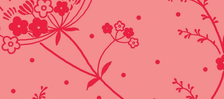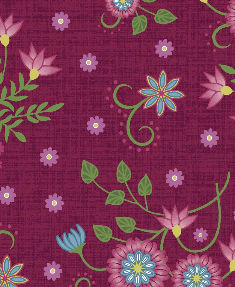 A fanciful garden of folk flowers and trailing vines dance across linen textured backgrounds in the latest collection by Monique Jacobs. These romantic and joyful designs in deep fuchsias, French blues, carnation pinks and botanical greens call to mind folktales and whimsy. The upbeat border print presents a variety of ways to frame your projects.