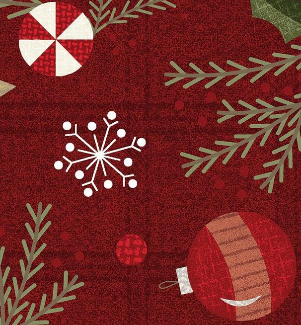 Curl up in front of the fire with swirling peppermints, fresh holly, and cheerful snowfolk clad in Snowdays Flannel by Bonnie Sullivan.