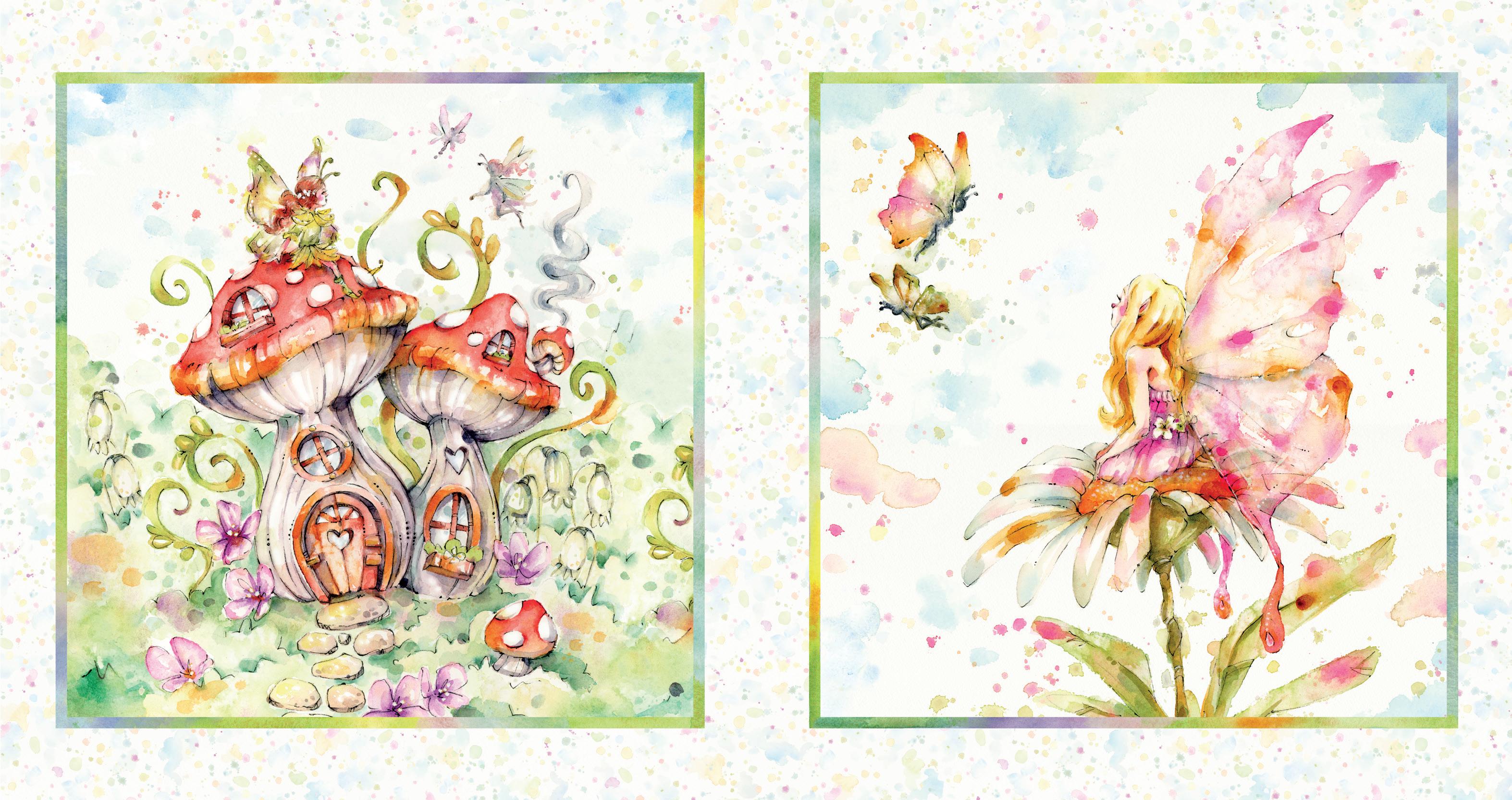 FAIG 5155 E (Rotated; 4 repeats across the width; ribbon approx. 5/8”; fairies approx 4 5/8”; approx. birds 4 5/8”; inset left reduced)