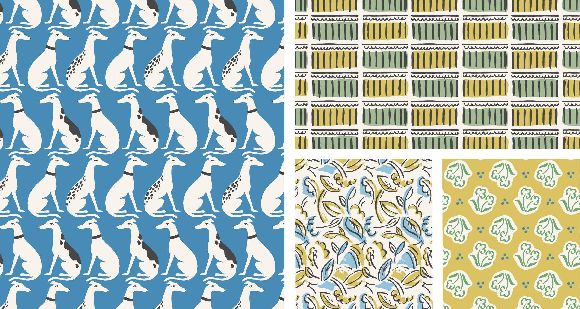 ARIANA creates joyful patterns from her peaceful studio in Yorkshire, UK. Her designs are simultaneously timeless yet fresh, mature yet cheerful. It was whilst studying for an MA in Design History that Ariana fell head over heels in love with 1930s textiles, and she enjoys incorporating these Art Deco influences into her own patterns.