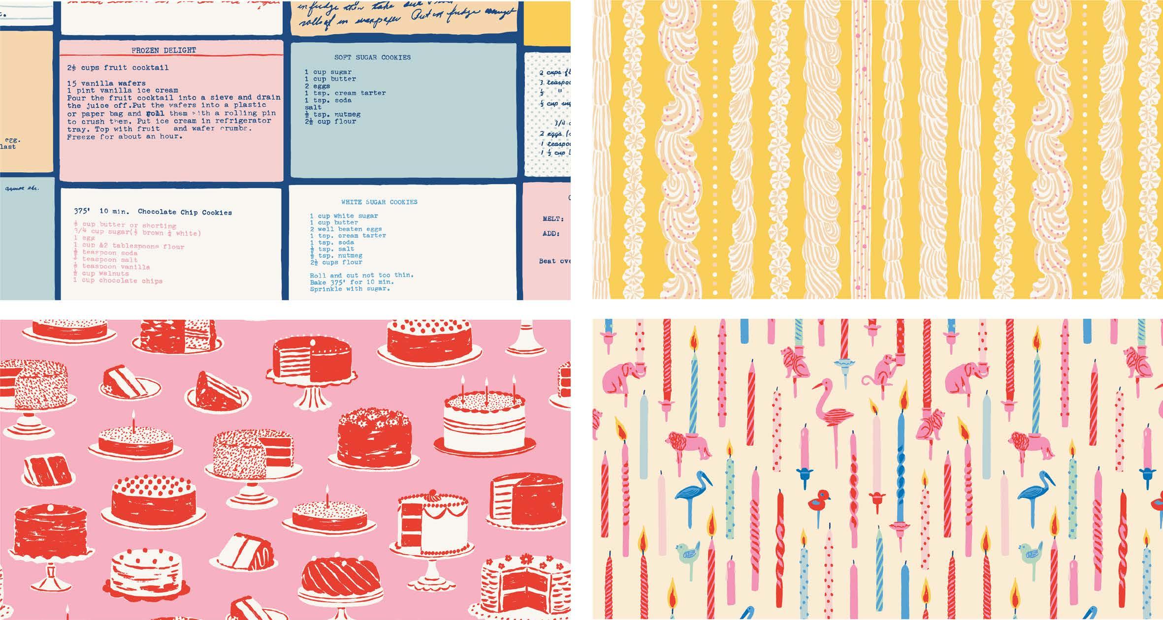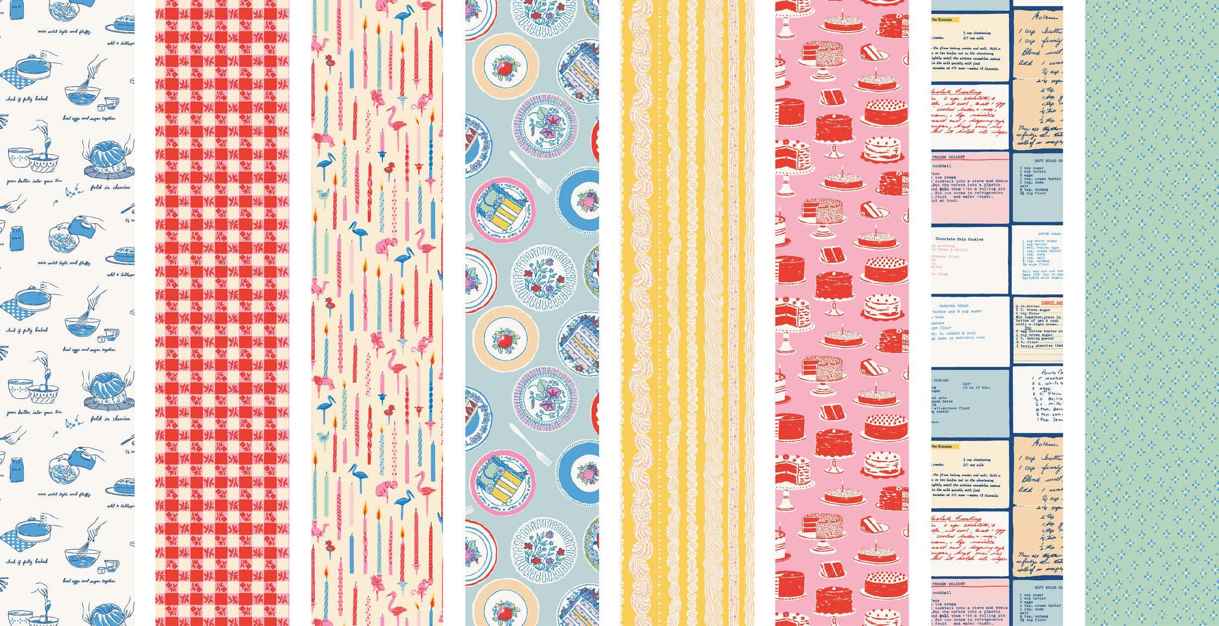 Match these prints to your sweet tooth’s delight! Inspired by midcentury children’s baking books and a Grandmother’s prized collection of recipe tins — chock full to bursting with colourful handwritten and typed recipe cards — Buttercream offers up a sugary and playful array of prints perfectly delectable for every cake-loving sewist!