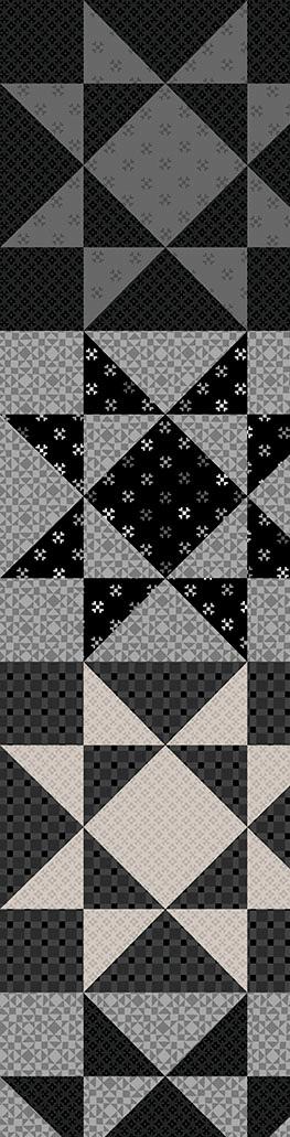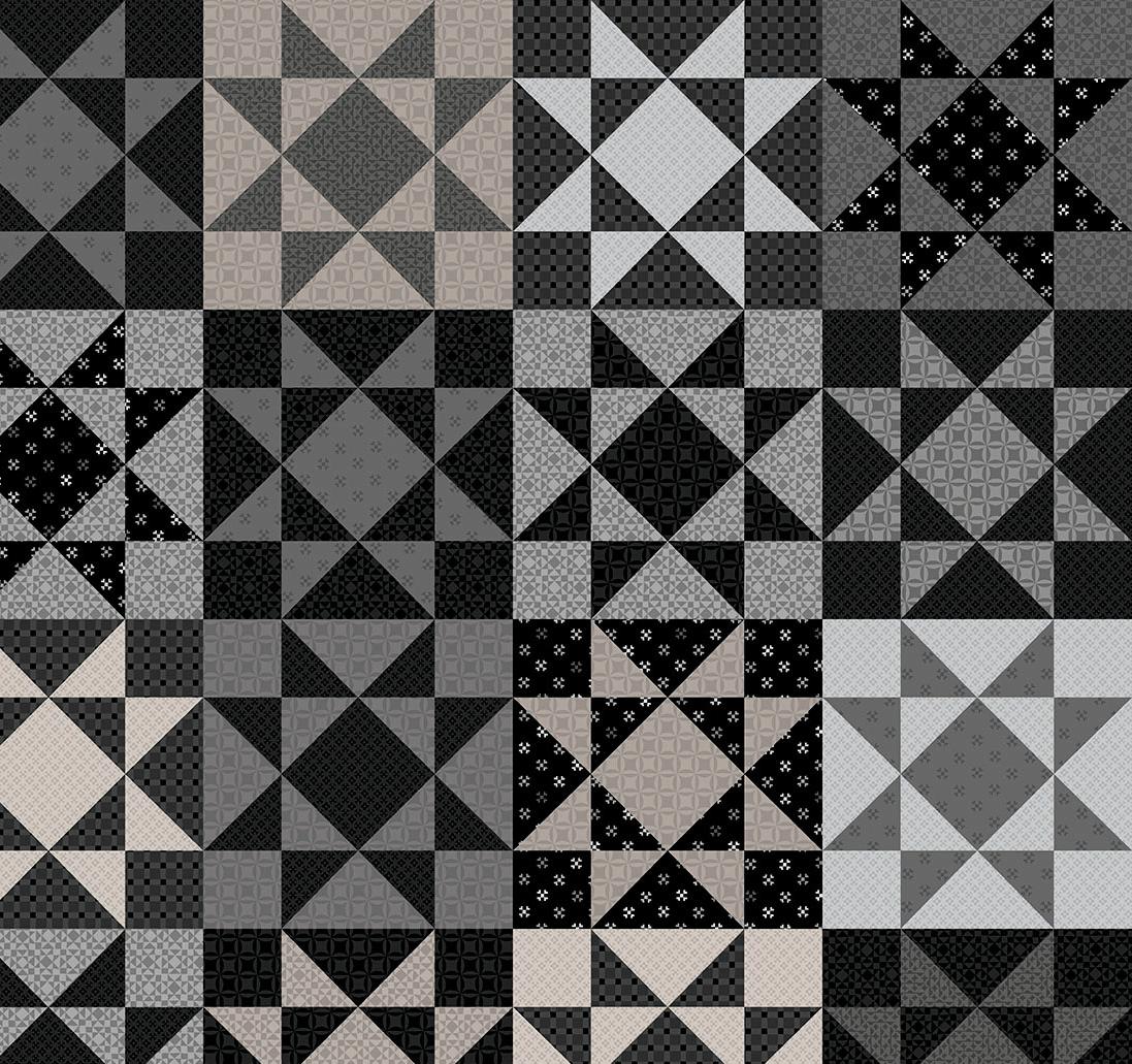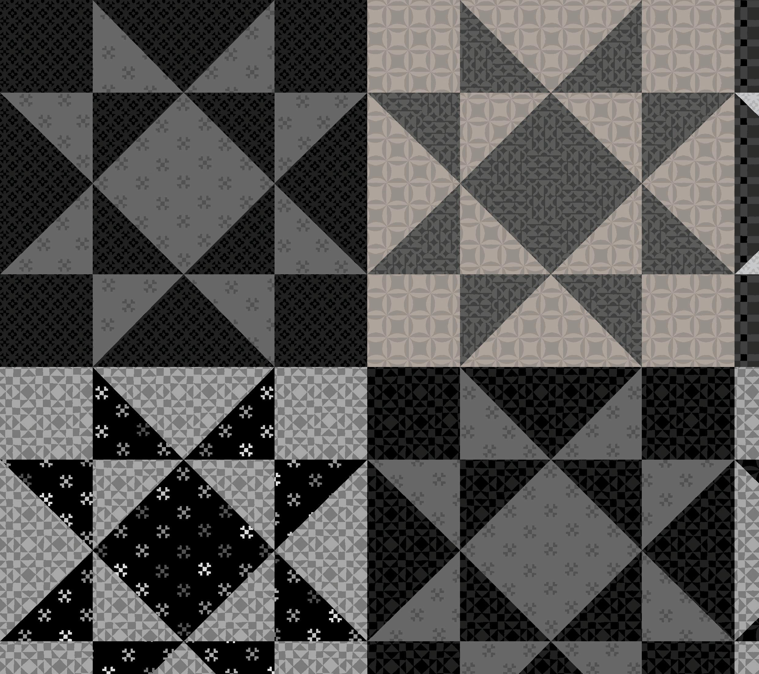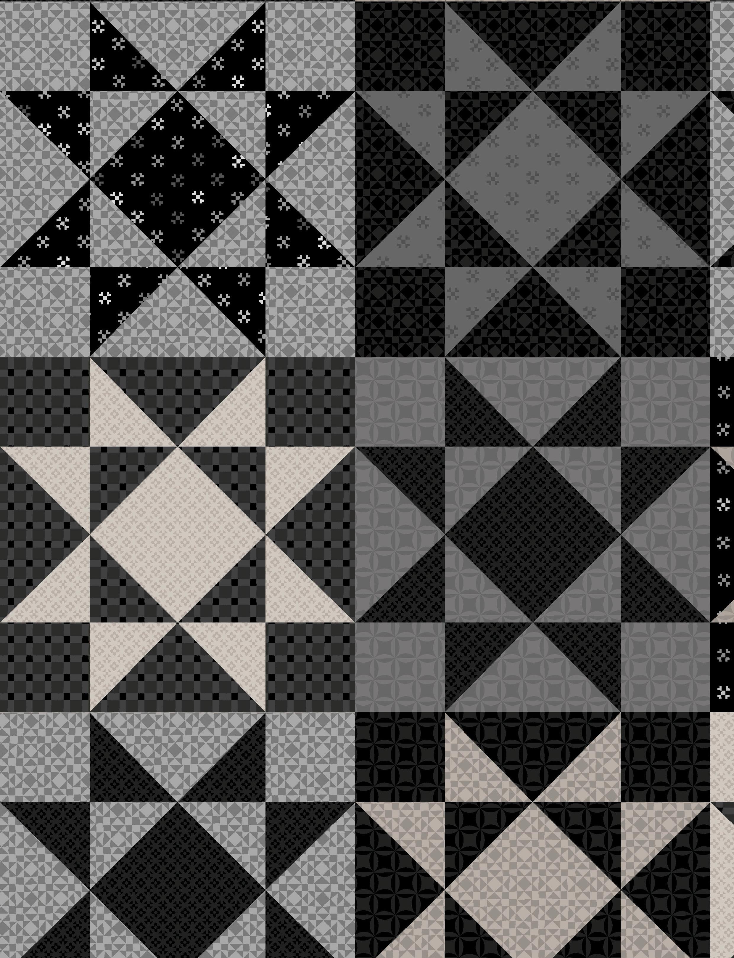 Colorblock Party Neutrals reimagines the original designs of Colorblock Party in soft, sophisticated neutrals like creamy ivory, taupe and gentle grays, and bold blacks. Inspired by the geometric shapes of quilt blocks, the designs connect the shared artistry of quilting and printmaking. Mix and match the prints for boldly contrasting projects or understated, low volume quilts.