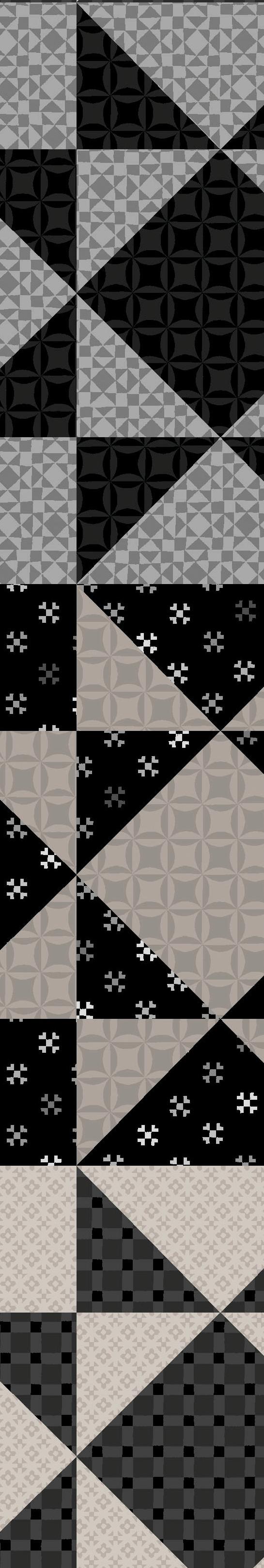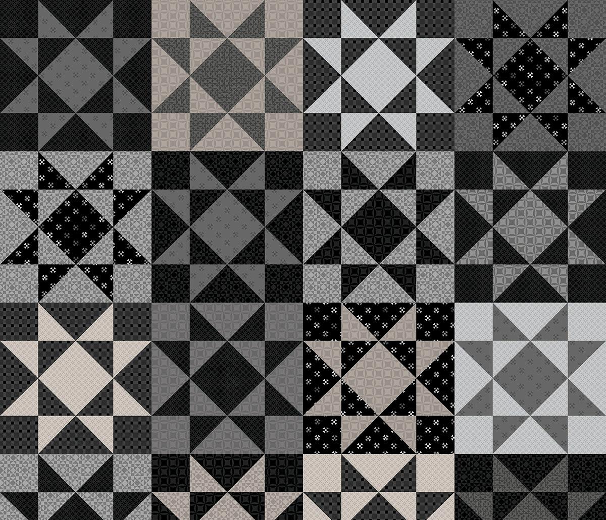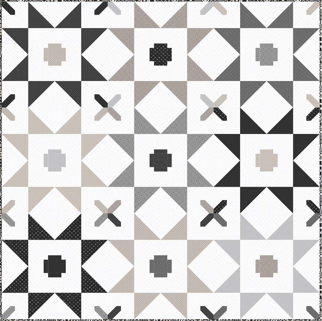 Colorblock Party Neutrals reimagines the original designs of Colorblock Party in soft, sophisticated neutrals like creamy ivory, taupe and gentle grays, and bold blacks. Inspired by the geometric shapes of quilt blocks, the designs connect the shared artistry of quilting and printmaking. Mix and match the prints for boldly contrasting projects or understated, low volume quilts.