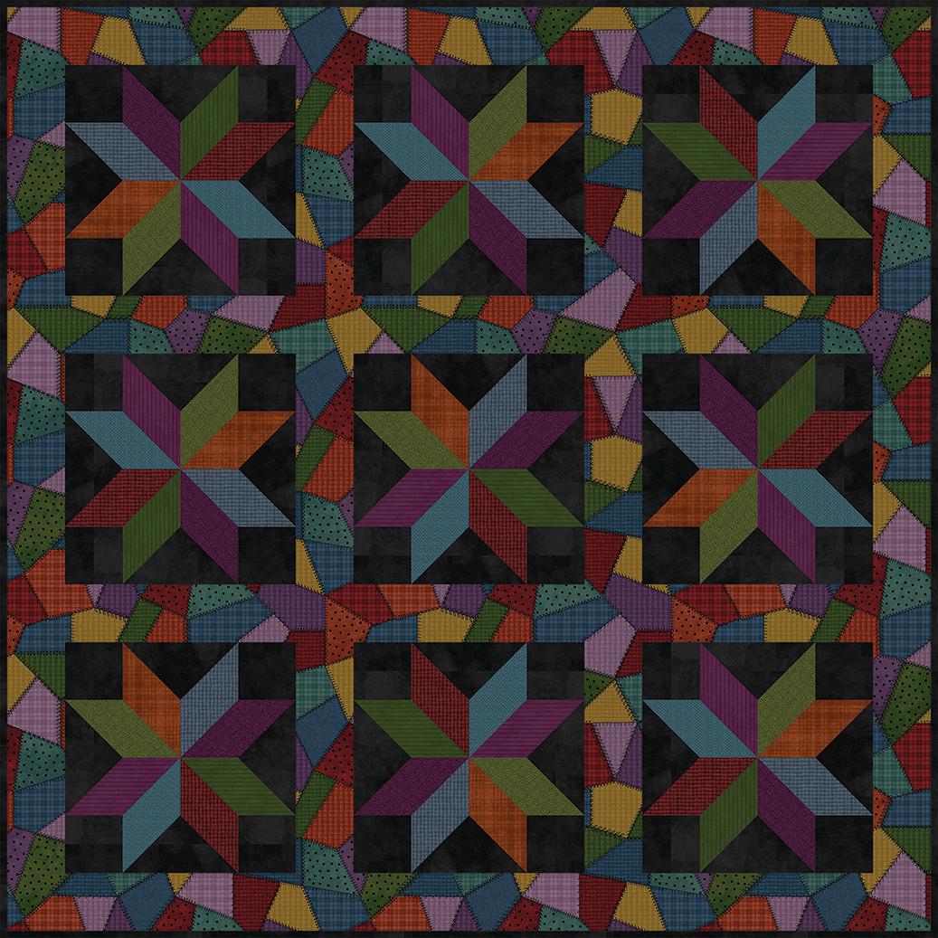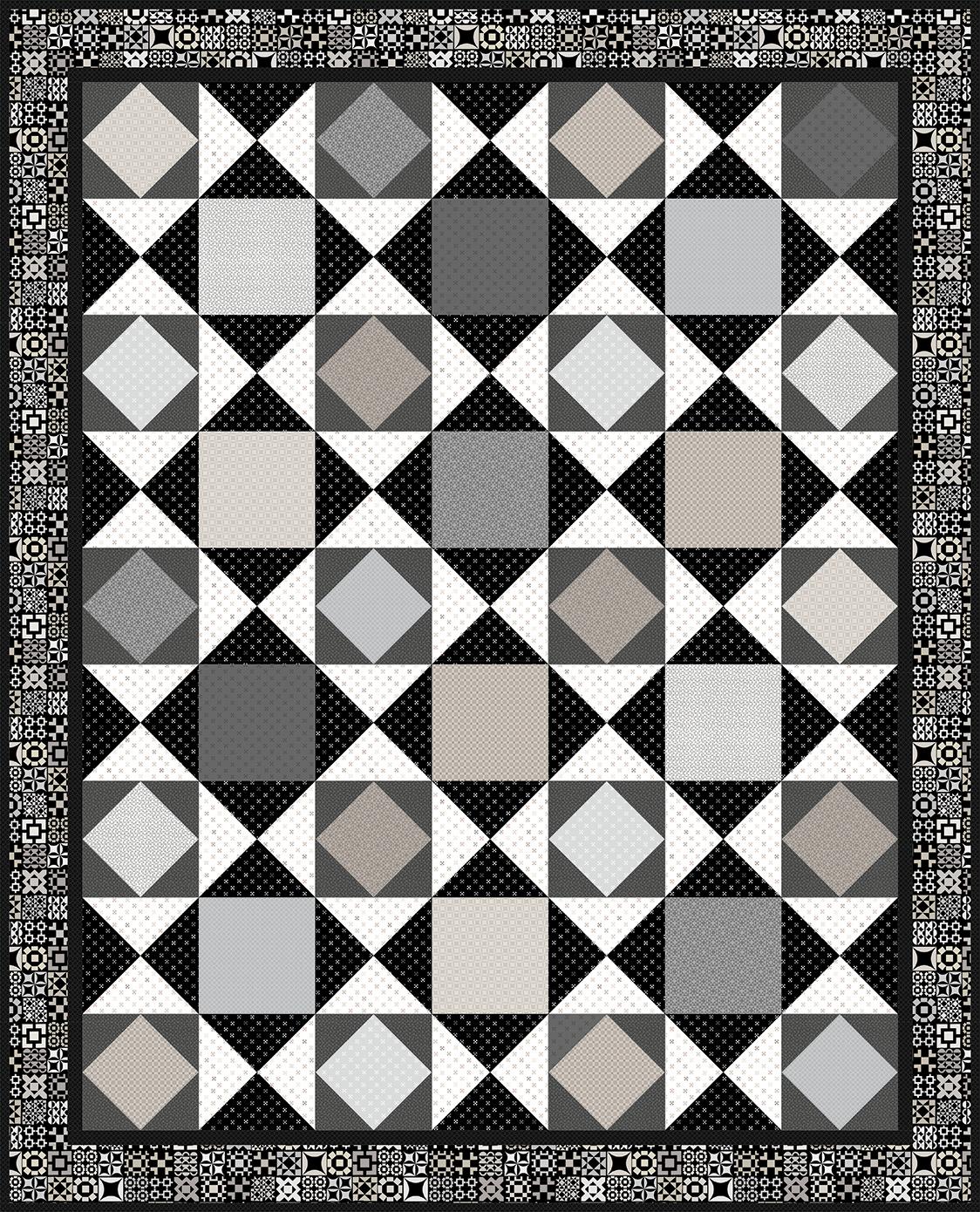 The 108” wide cheater prints feature a repeating star-block design filled with patterns from Colorblock Party Neutrals in a light and dark color combination. Oversized and graphic, these prints are perfect for quilt backs, quick projects, or statement garments.