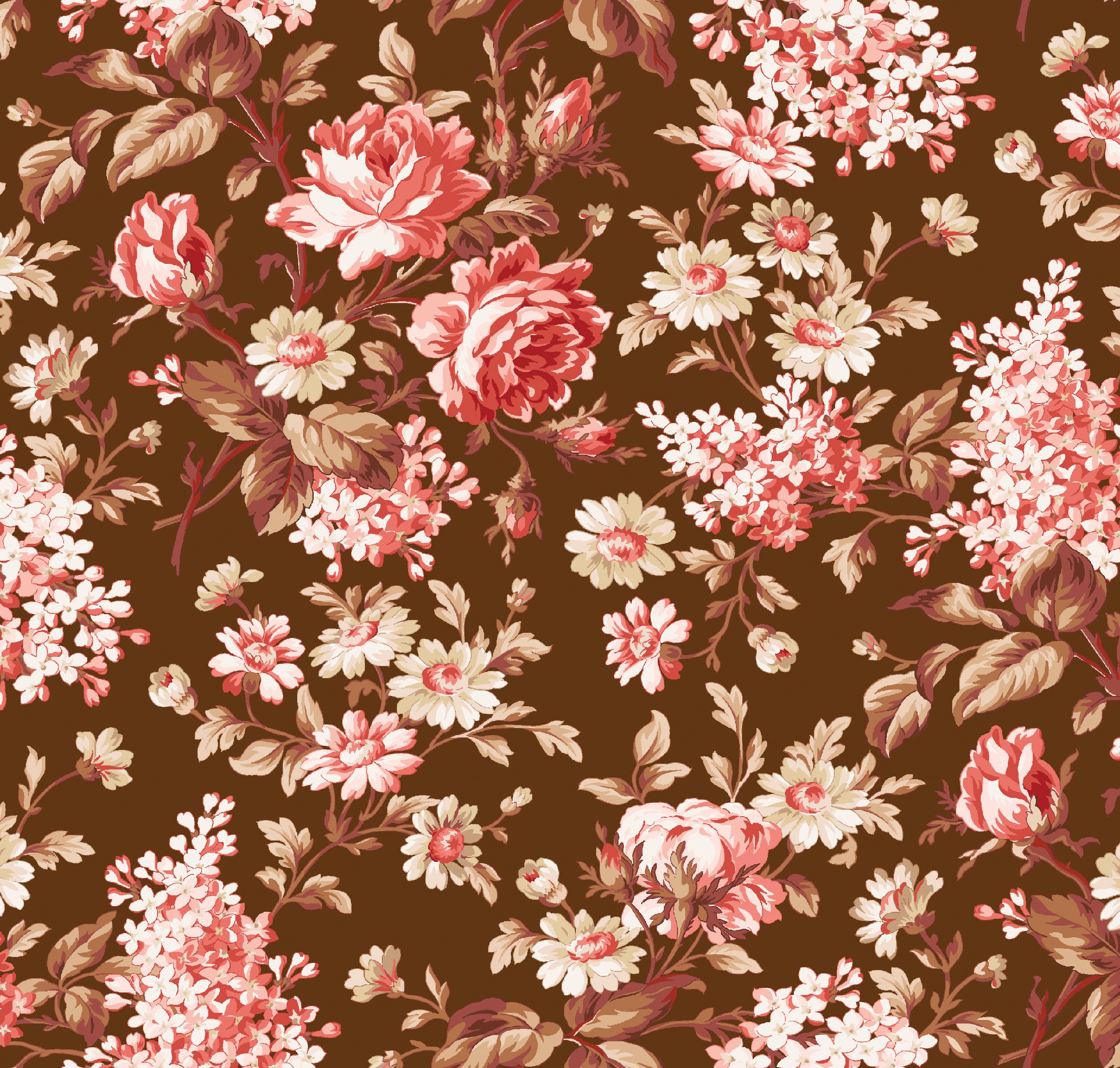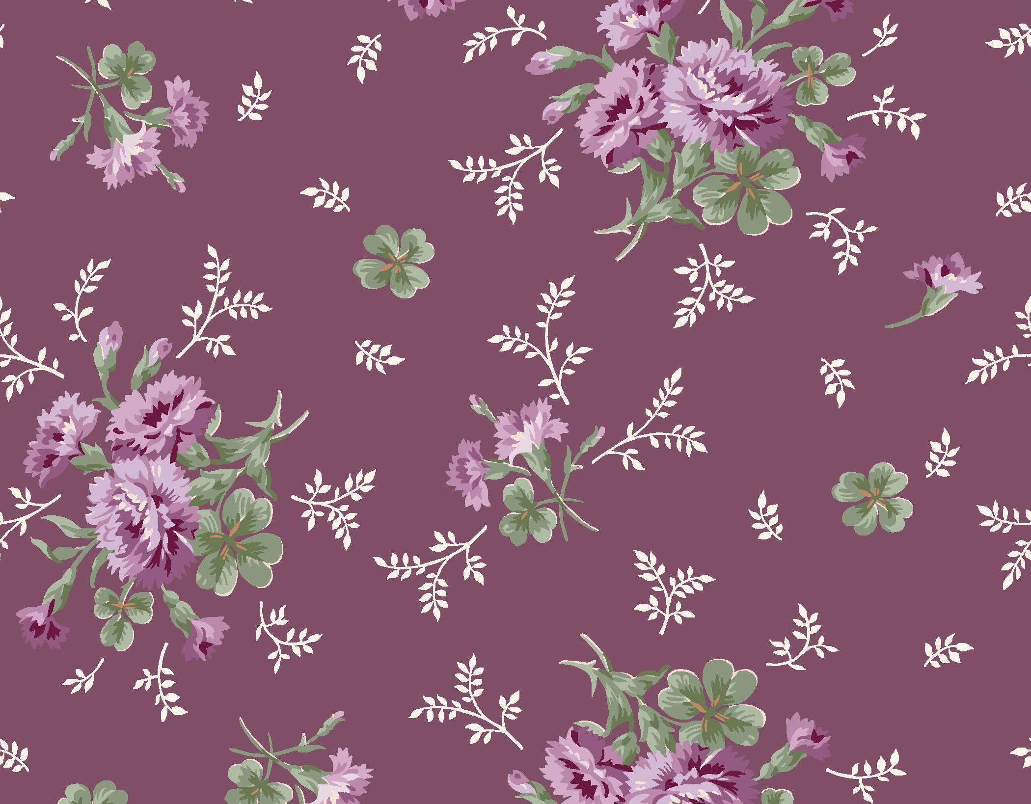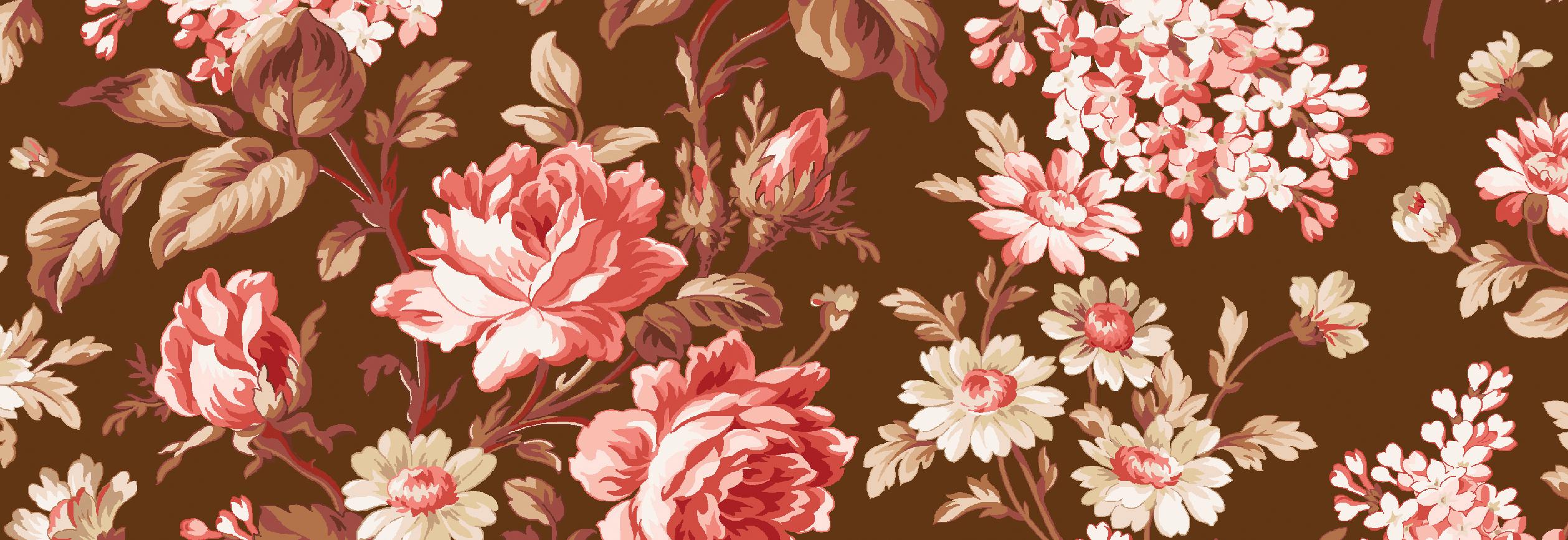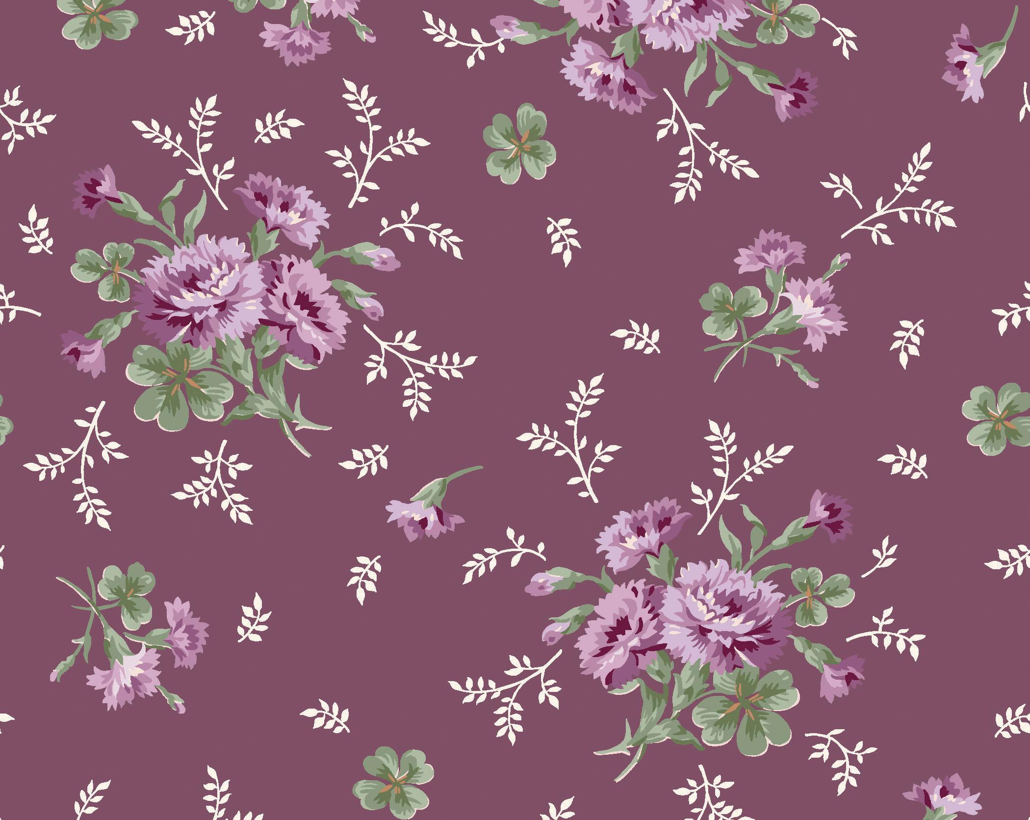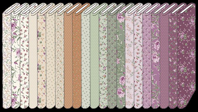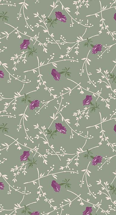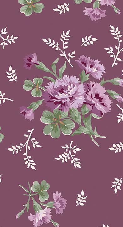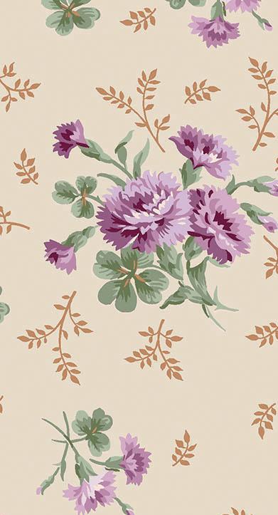 Courtland draws from the long history and symbolism of carnations, a flower representing love, admiration, and lasting beauty. Shades of moss, plum, cinnamon, and cream mingle with delicate trailing vines and tossed bouquets creating a palette that evokes antique charm. This collection is well suited for quilts, table runners, and home décor projects that feel grounded and timeless.