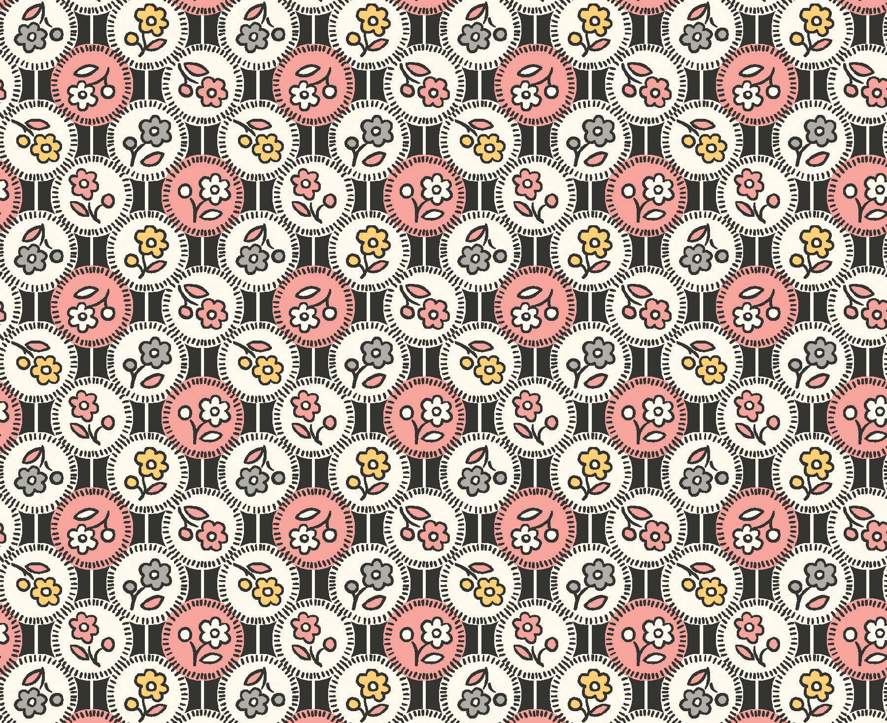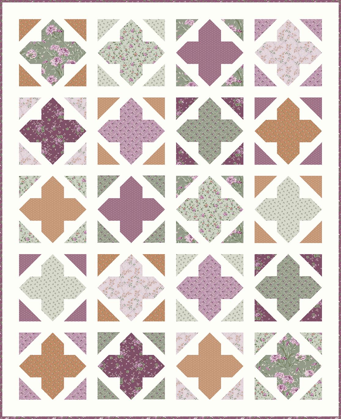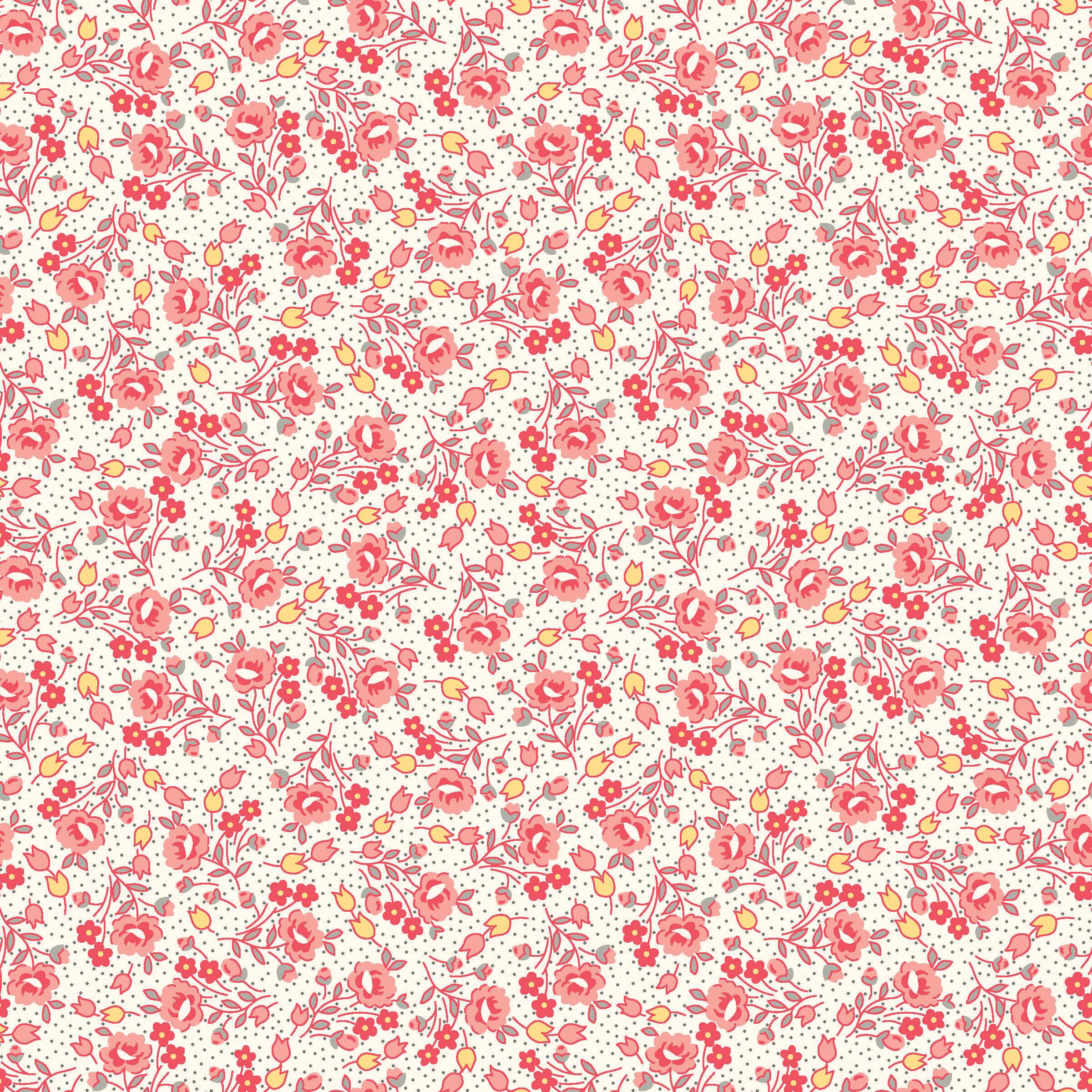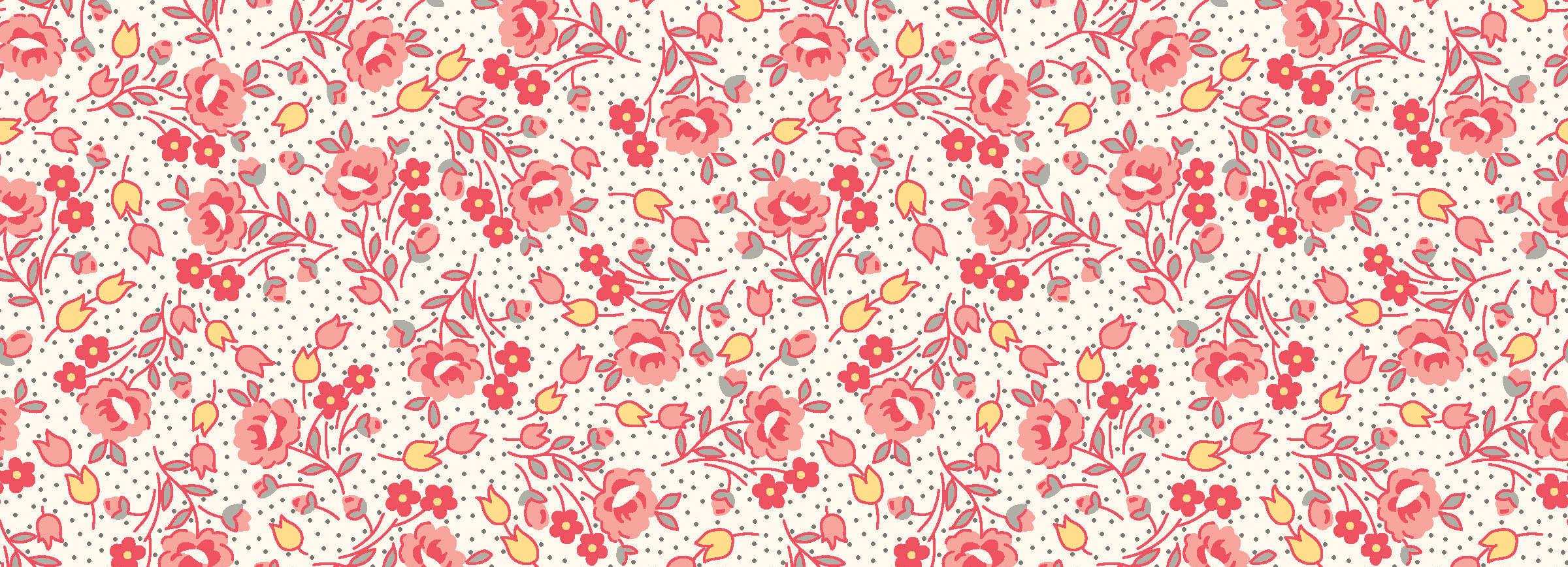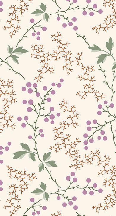 Courtland draws from the long history and symbolism of carnations, a flower representing love, admiration, and lasting beauty. Shades of moss, plum, cinnamon, and cream mingle with delicate trailing vines and tossed bouquets creating a palette that evokes antique charm. This collection is well suited for quilts, table runners, and home décor projects that feel grounded and timeless.