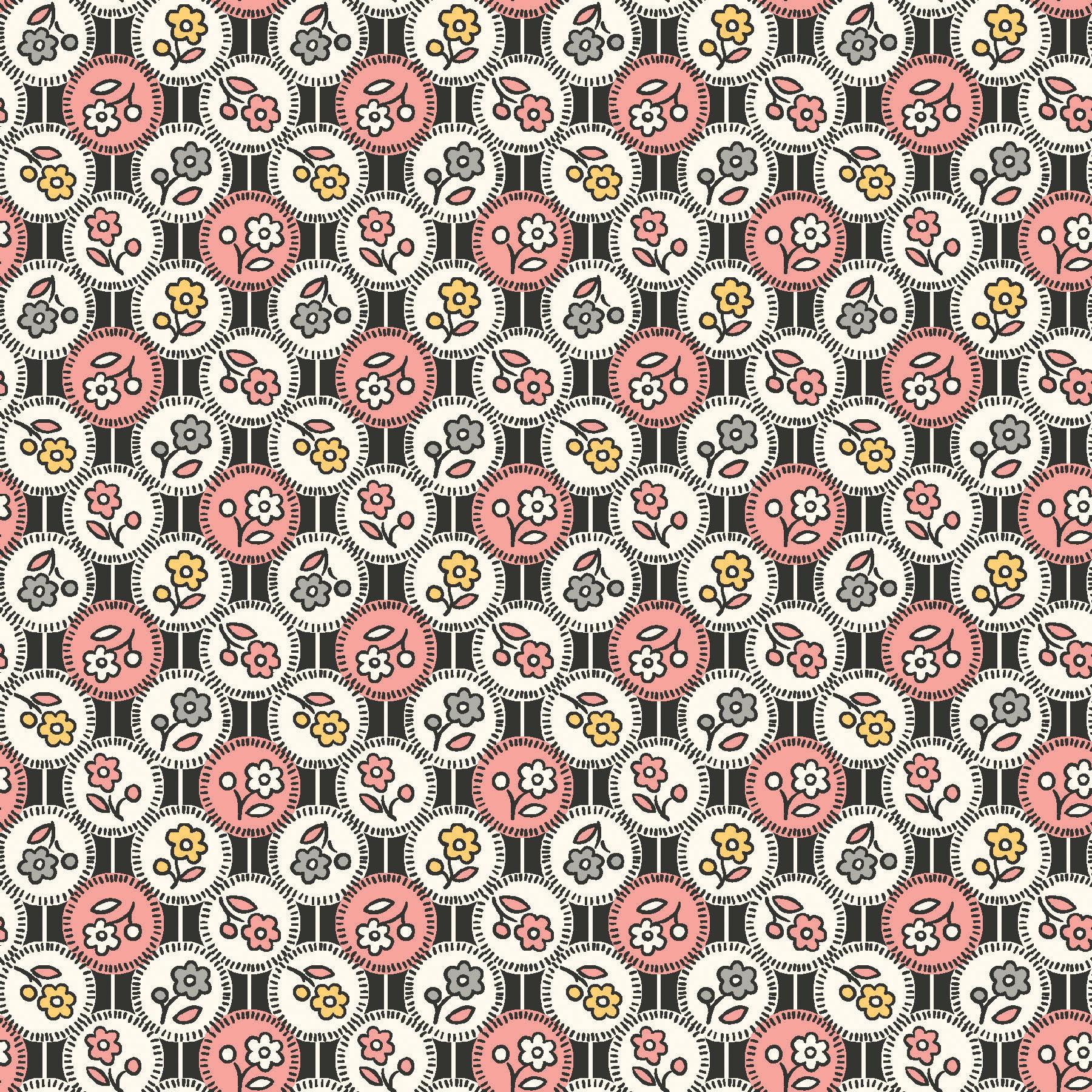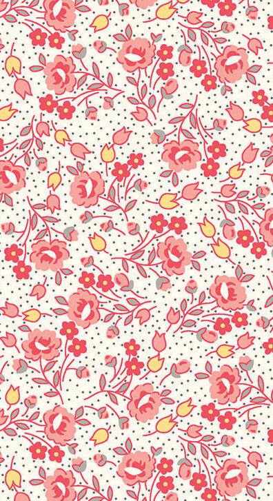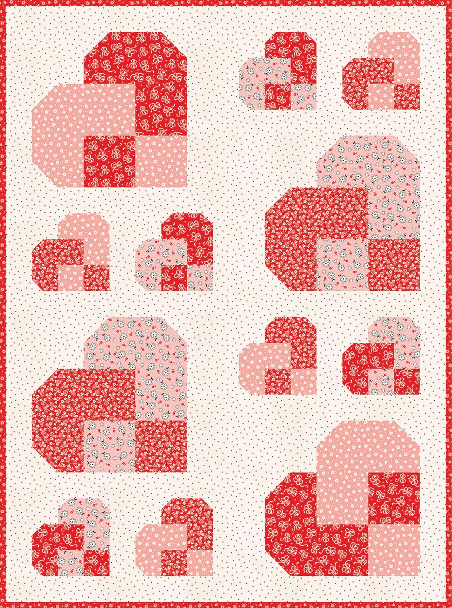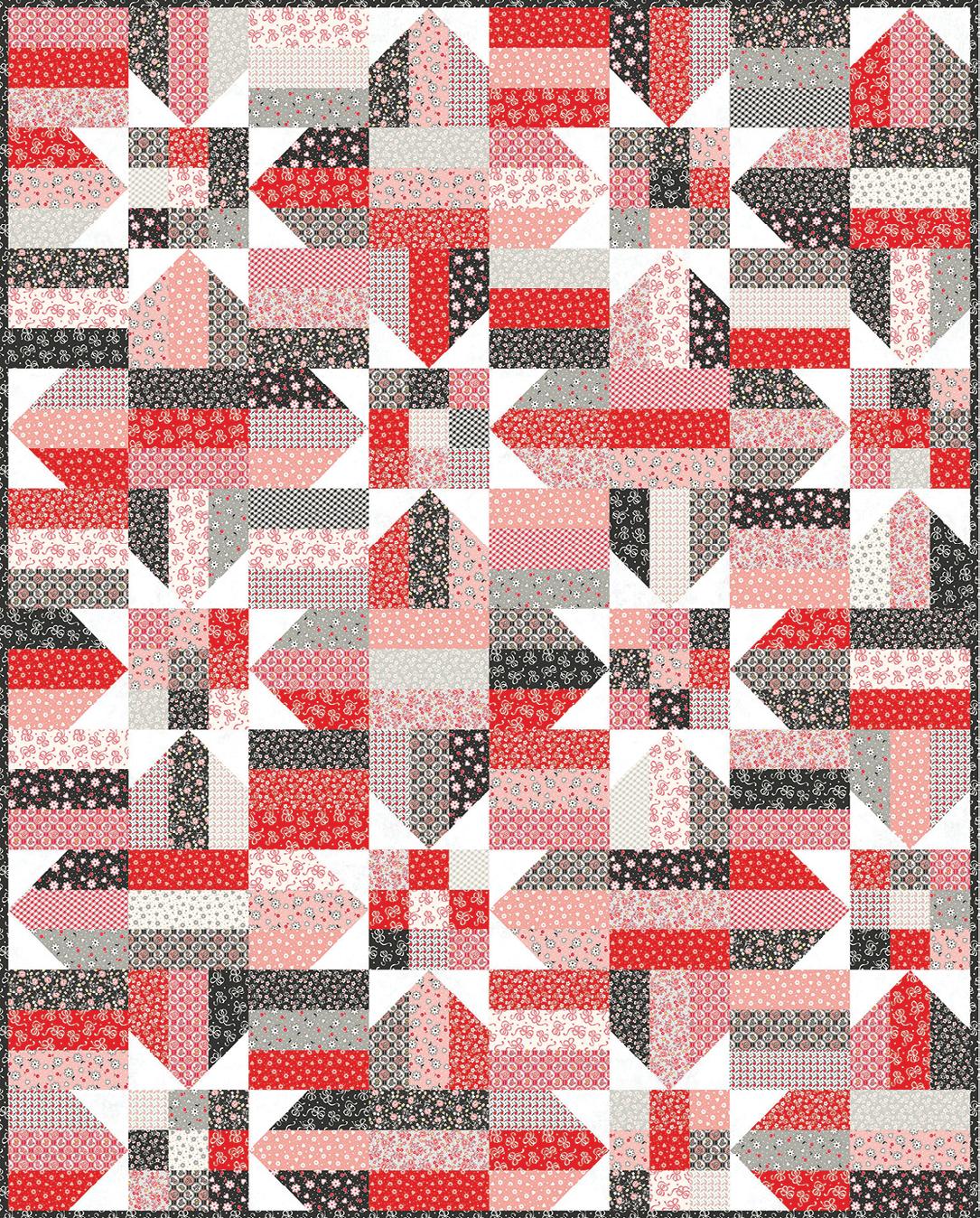 Dear Sweetheart celebrates Valentine charm with vintage feedsack prints from the 1930s. Bows, hearts, and ditsy florals in a sweet range of pinks, reds, and blacks evoke a heart-filled, nostalgic feel, while the centerpiece is a cheater quilt print based on the classic Broken Dishes block. As a Kim’s Cause collection, a portion of the proceeds is donated to cancer research.