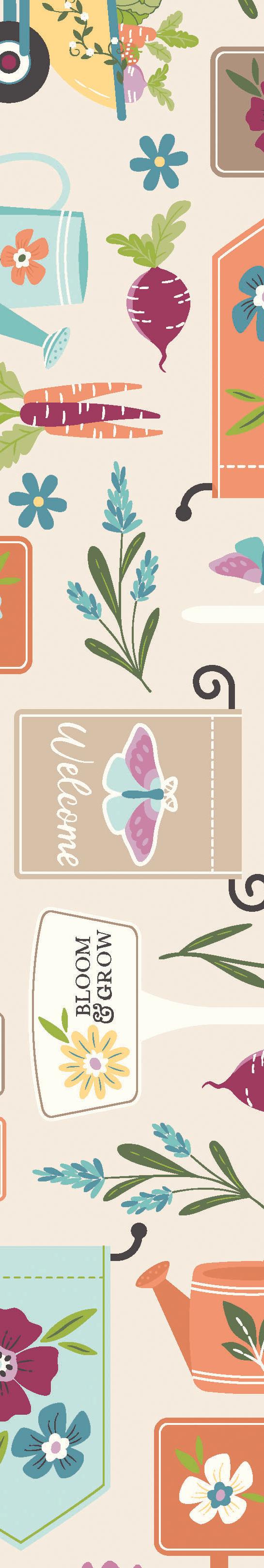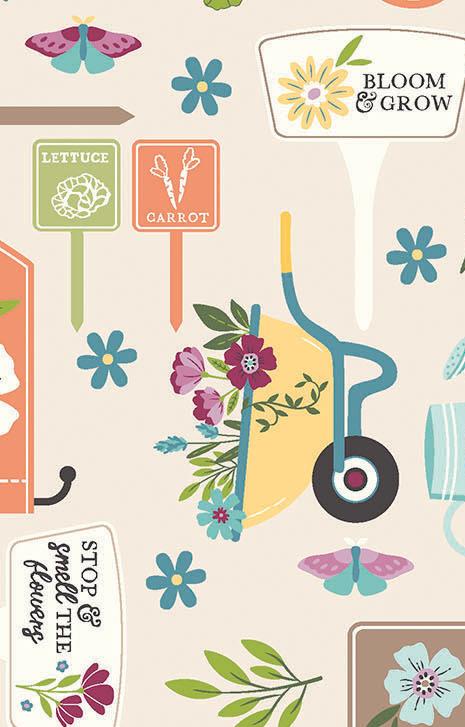 The Kimberbell Cottontail Farm fabric collection invites you to enjoy a cheerful garden filled with fresh flowers and farm-inspired charm. Soft creams, golden yellows, teals, and berry tones capture the joy of a garden in bloom. Perfect for aprons, table runners, quilts, and more, this collection coordinates beautifully with Kimberbell Solids and Basics.