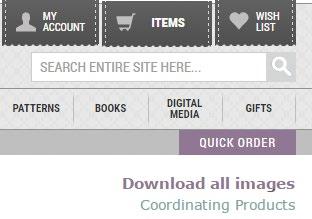 Often fabric collections will have other basic fabrics that coordinate with them but are not part of the collection. On the Product Detail page, look in the upper right to find the Coordinating Products link. Products will show up at the bottom of every page in a collection.