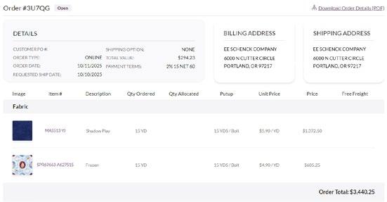 EE Schenck carries more than 70,000 items, including a variety of fabric, notions, books, patterns, and more. We offer specialty fabric for small manufacturers and quilting fabric for independent retailers, and feature our own in-house designs and offer products from leading international brands. Our huge selection of fabric, notions, thread, crafts, batting, interfacing, storage, lighting, patterns, books, and more are all under one roof and easily searchable on our website. We even work with customers on custom sourcing, dyeing, and printing. Our wide selection of products combined with our commitment to helping our customers find what they need, make EE Schenck the one-stop shopping destination for all sewing, quilting, crafting, and manufacturing needs.