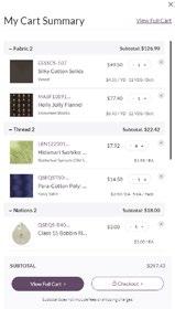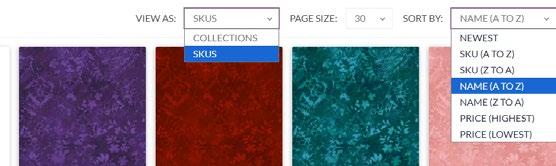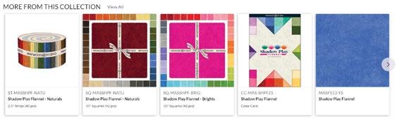 On fabric product details pages, navigate to the bottom to find additional SKUs offered from this collection; this can include available Color Cards, Precuts, Kits, and additional prints/colorways.