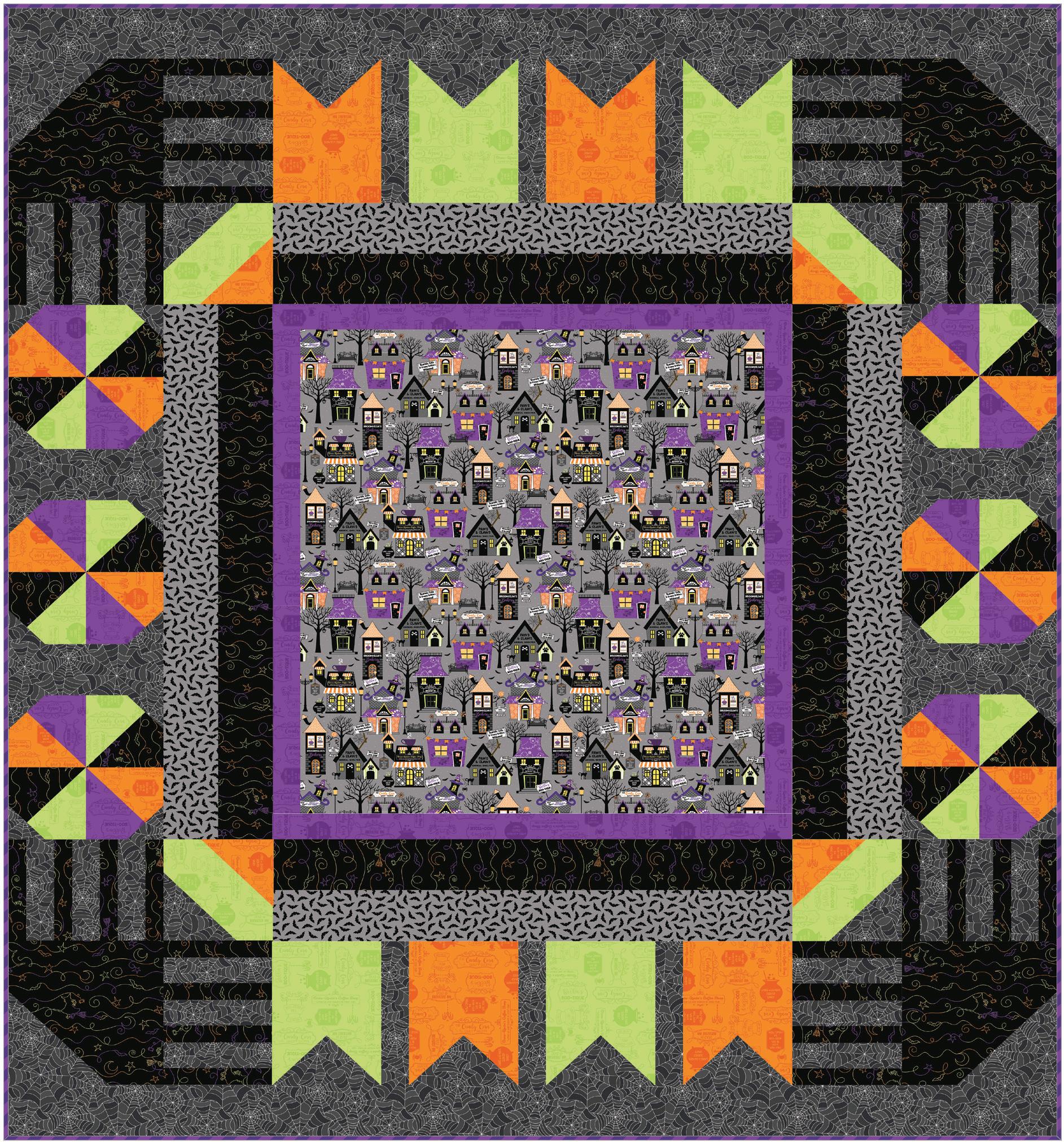 Candy Corn Quilt Shoppe Hometown Halloween Feature Quilt KimberBell 40 x 40 Designer | Kim Christopherson KID810 | Embroidery CD NOTE: Yardages are estimates. Please do not kit from these amounts. Issue date: September 2020