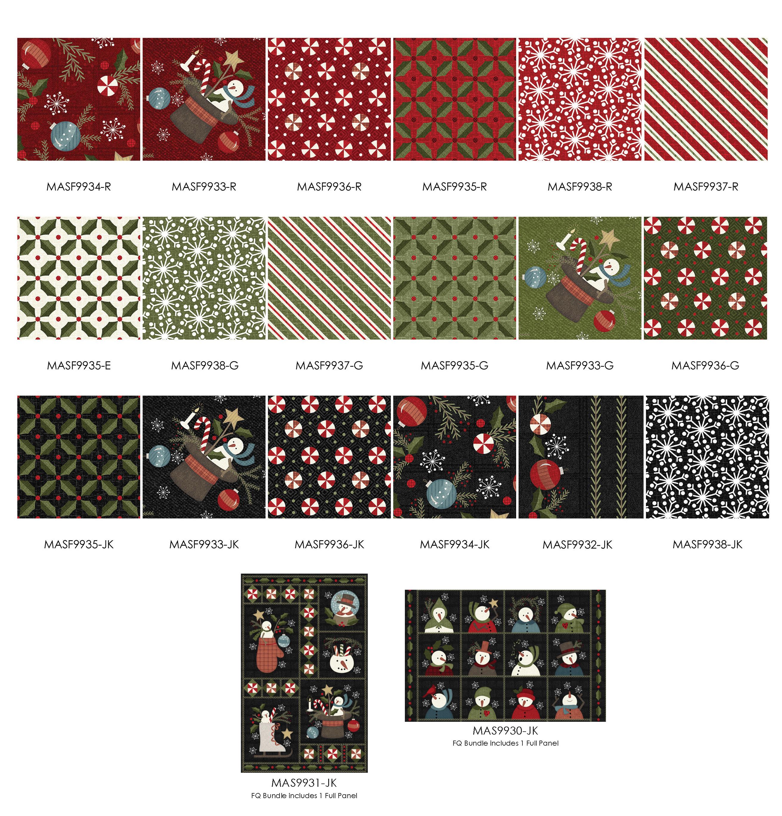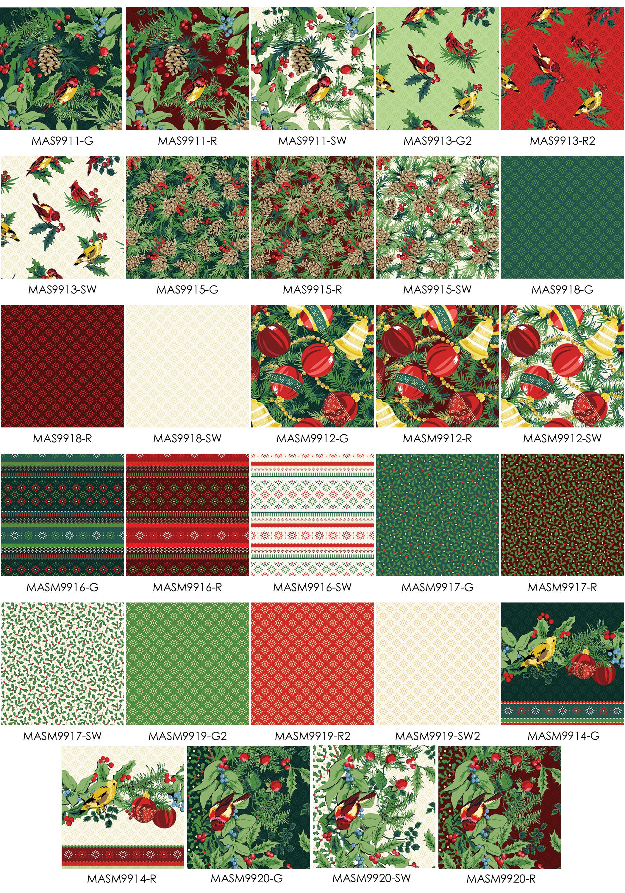5 " CHARMS CP-MASSWW 42 PCS 10 " SQUARES SQ-MASSWW 42 PCS STRIPS ST-MASSWW 40 PCS FAT QUARTERS FQ-MASSWW 21 PCS MASSWW15CA 23 PCS – 15 YDS EA MASSWWCA 23 PCS – 10 YDS EA CASE ASSORTMENTS