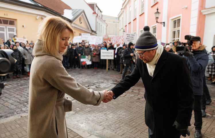 The teachers’ strike that started on 22 January also included a demonstration in front of the Parliament. By the second week of the strike, the number of teachers on the streets had dwindled, but as they moved together from Toompea Castel to the Stenbock House, Reemo Voltri, the leader of the strike and the head of the Estonian Educational Personnel Union, had a chance to greet Prime Minister Kaja Kallas.