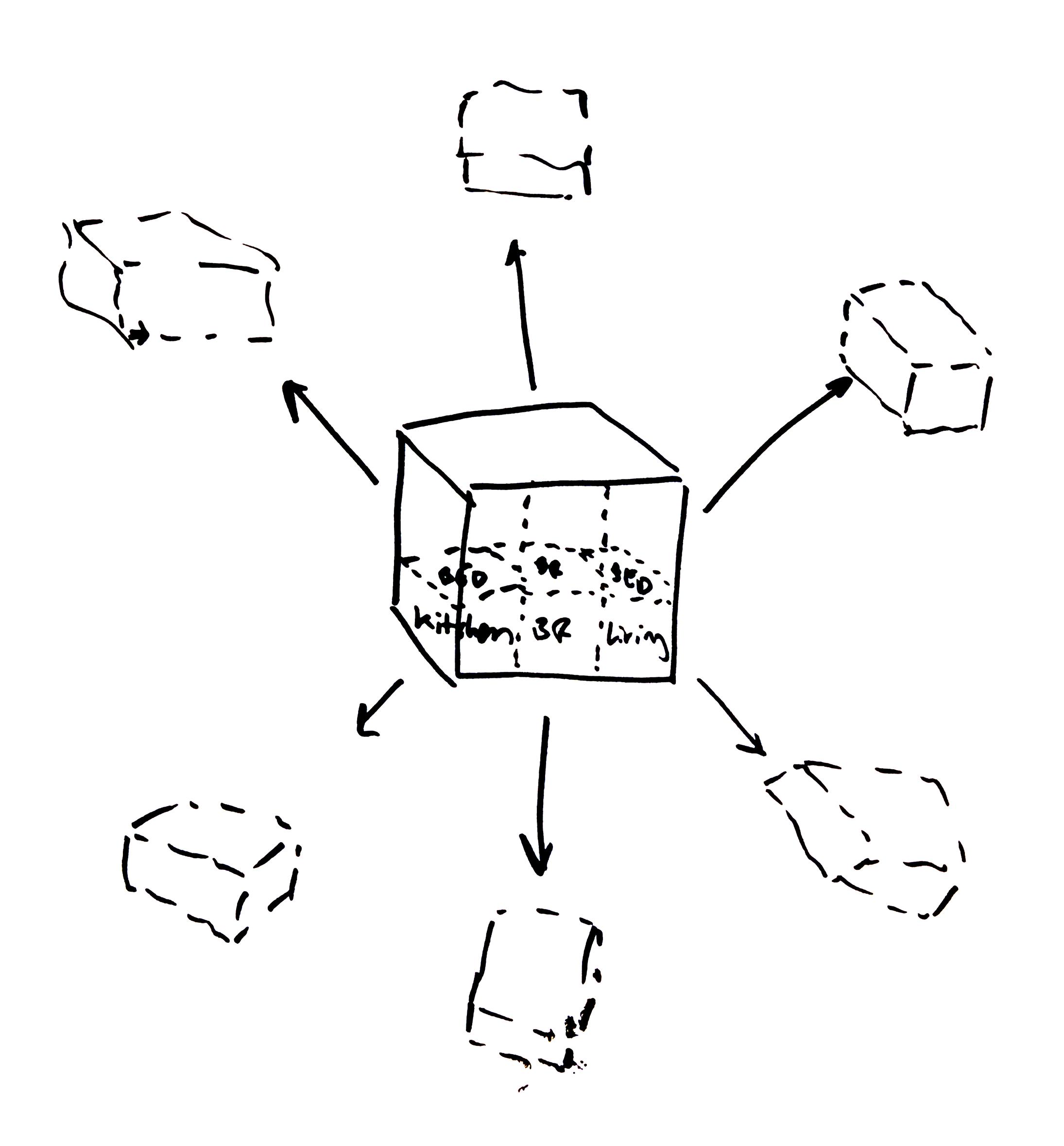 Exploding Diagram. Exploding the programs of a typical single-family residency