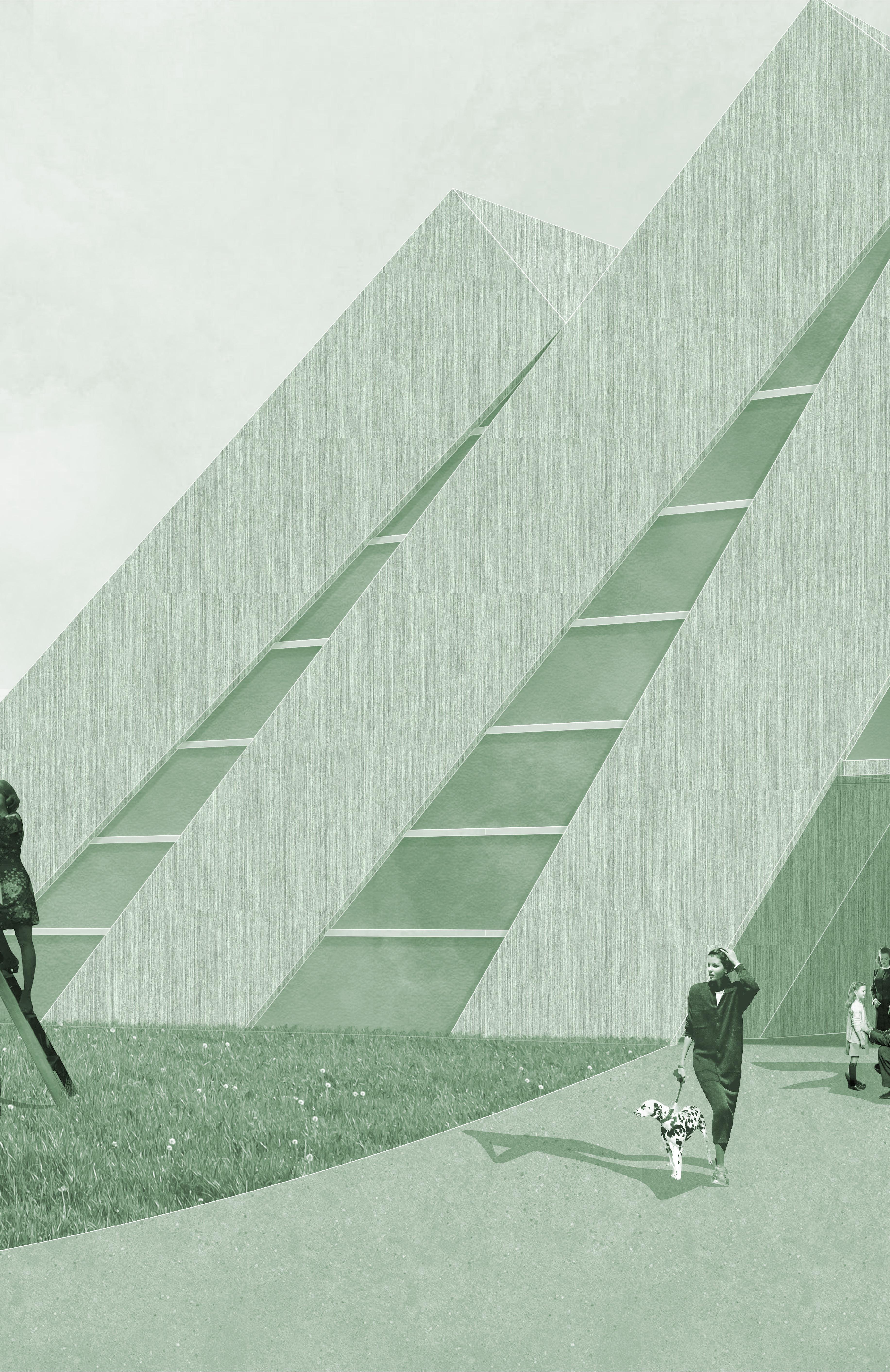 The twisting of “books” creates outdoor balcony spaces The leaning books creates threshold spaces of natural light in between the books